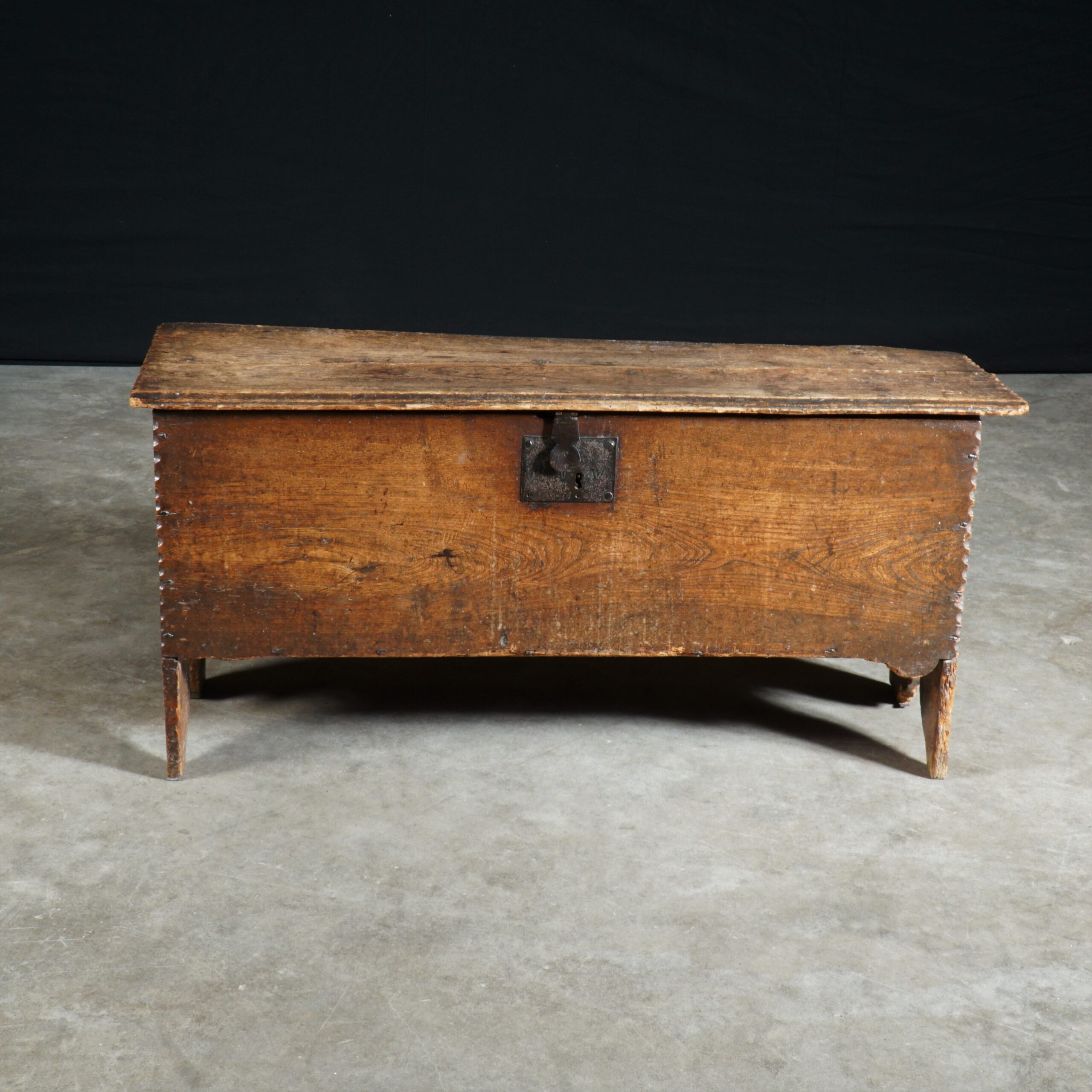 Een prachtige 16e-eeuwse Engelse eikenhouten degenkist met een onaangeroerd natuurlijk patina. De kist heeft nog zijn originele scharnieren en hasp met slotplaat. Een bijzonder mooi voorbeeld van vroeg Engels meubilair en in uitstekende staat voor zijn leeftijd. Een uniek stukje geschiedenis in uw eigen woonkamer….wat een juweeltje!