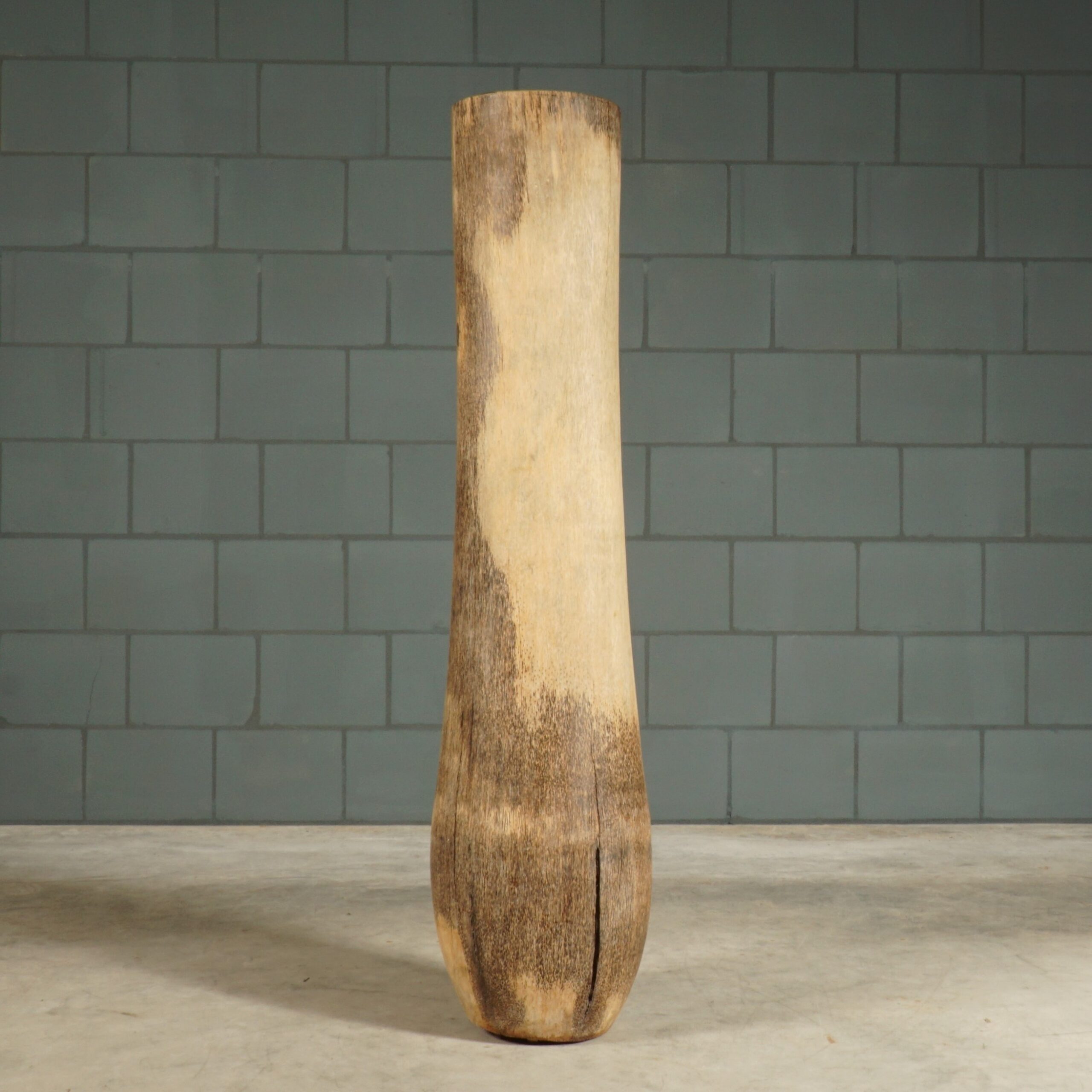 Deze prachtige grote palmvaas is 150 cm hoog en is gemaakt van een palmboomstam, welke is gekweekt op het Indonesische eiland Java. De stam wordt gezaagd, de palm uitgehold en vervolgens uitgebrand. De houten palmvaas is een exclusief en uniek decoratief object voor in elke interieurstijl. De vaas staat prachtige op zichzelf, maar kan op verschillende manieren ook gecombineerd worden met andere objecten. Met deze vaas haal je een stukje natuurlijk design in huis!