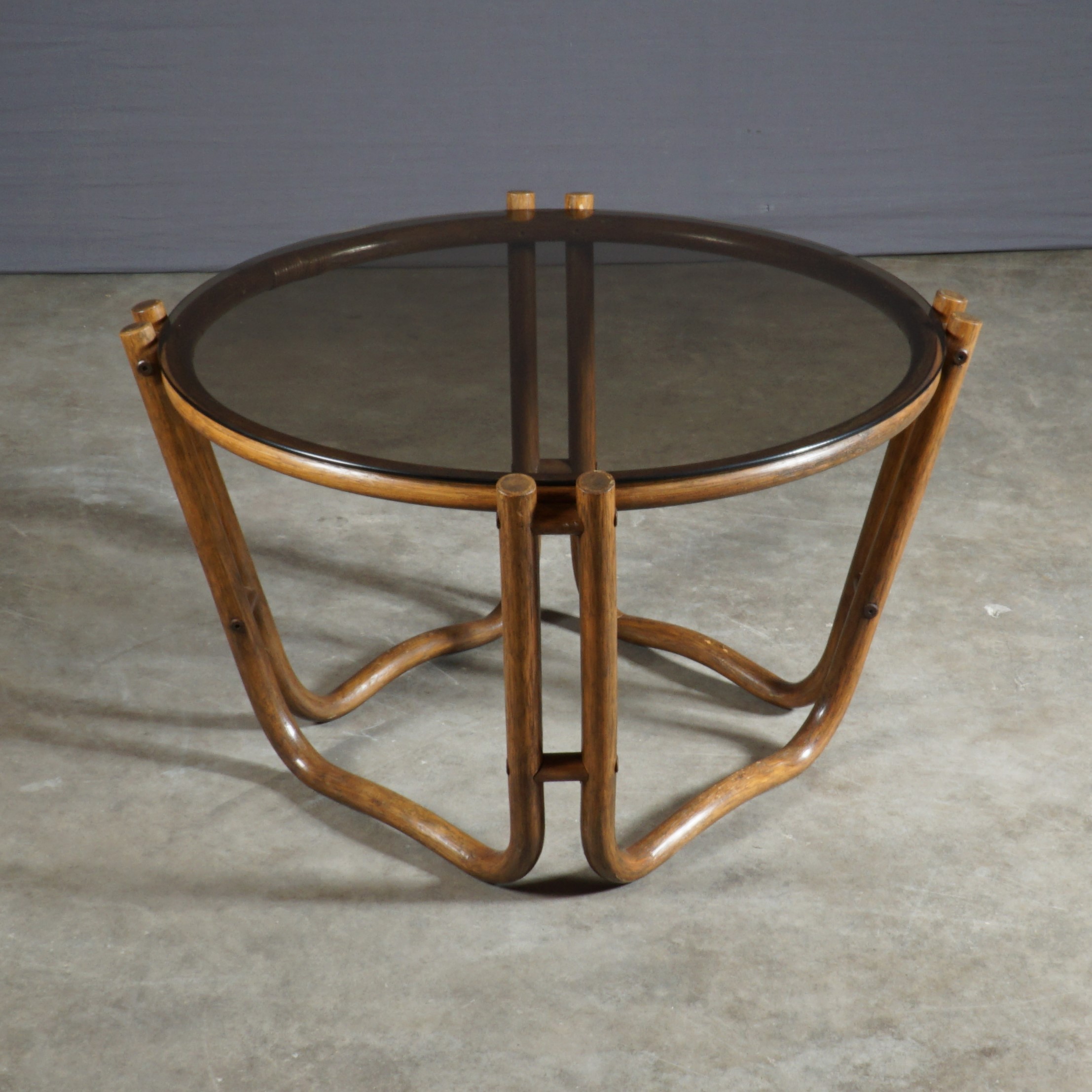 Afmetingen stoel: 63 cm breed, 76 cm diep, 78 cm hoog, 42 cm zithoogte, 50 cm zitdiepte. Afmetingen tafel: 88 cm diameter, 51 cm hoog.