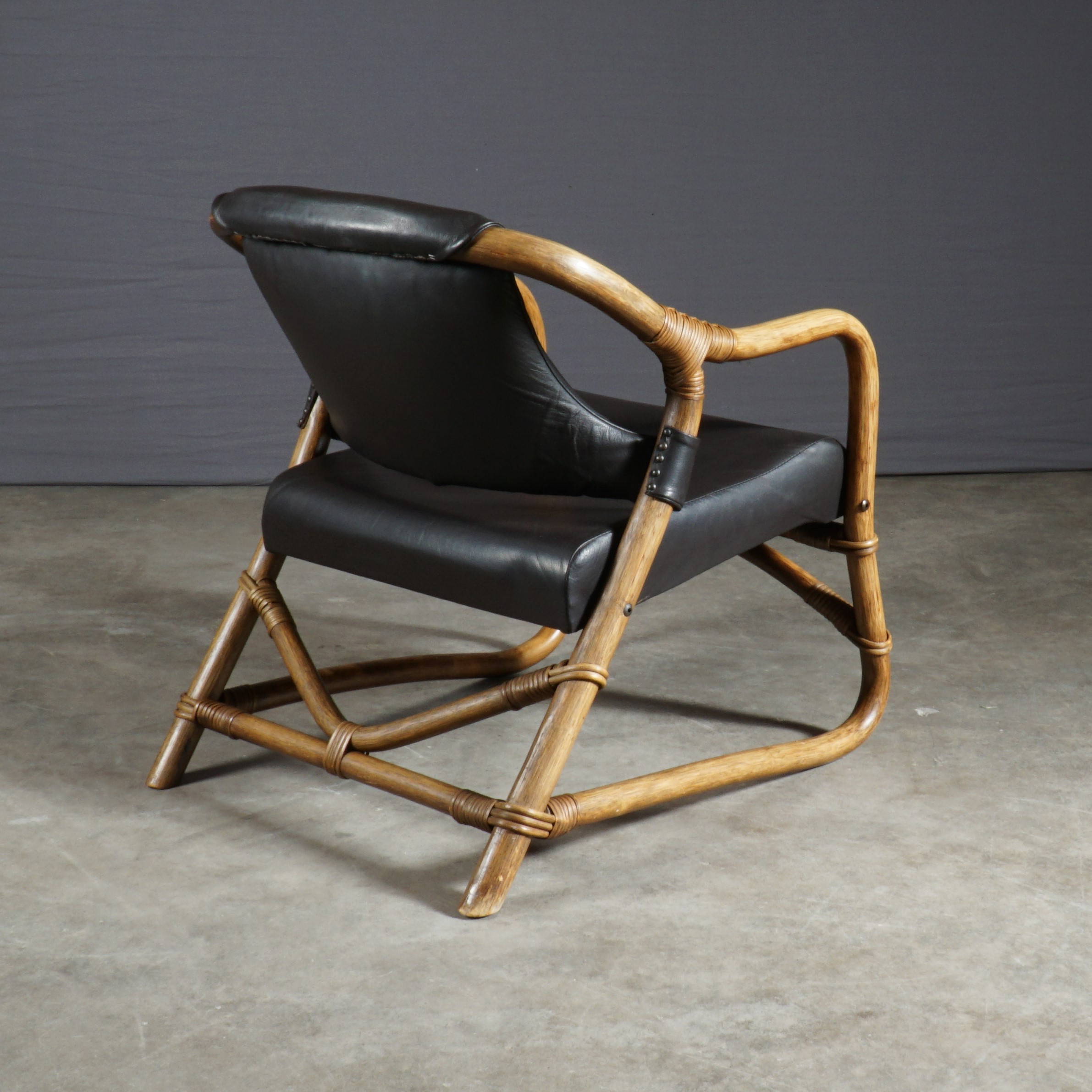 It’s lounge time!! En dat gaat moeiteloos in deze prachtige en stijlvolle bamboe loungeset bestaande uit vijf stoelen en een bijbehorende tafel. De stoelen zijn bekleed met dik kwalitatief bruin leder en het tafeltje heeft een donker glazen blad. Het bamboe heeft een mooie patina en door de lederen bekleding heeft deze set een stoere uitstraling. Absoluut een lust voor het oog! Gezien de leeftijd nog in een zeer goede vintage staat met enige gebruikssporen en wat lichte krasjes op het glas. Een geweldig stijlvolle set voor zowel binnen als buiten. Geef een stoere, toch stijlvolle look aan je interieur met deze te gekke vintage lounge set.