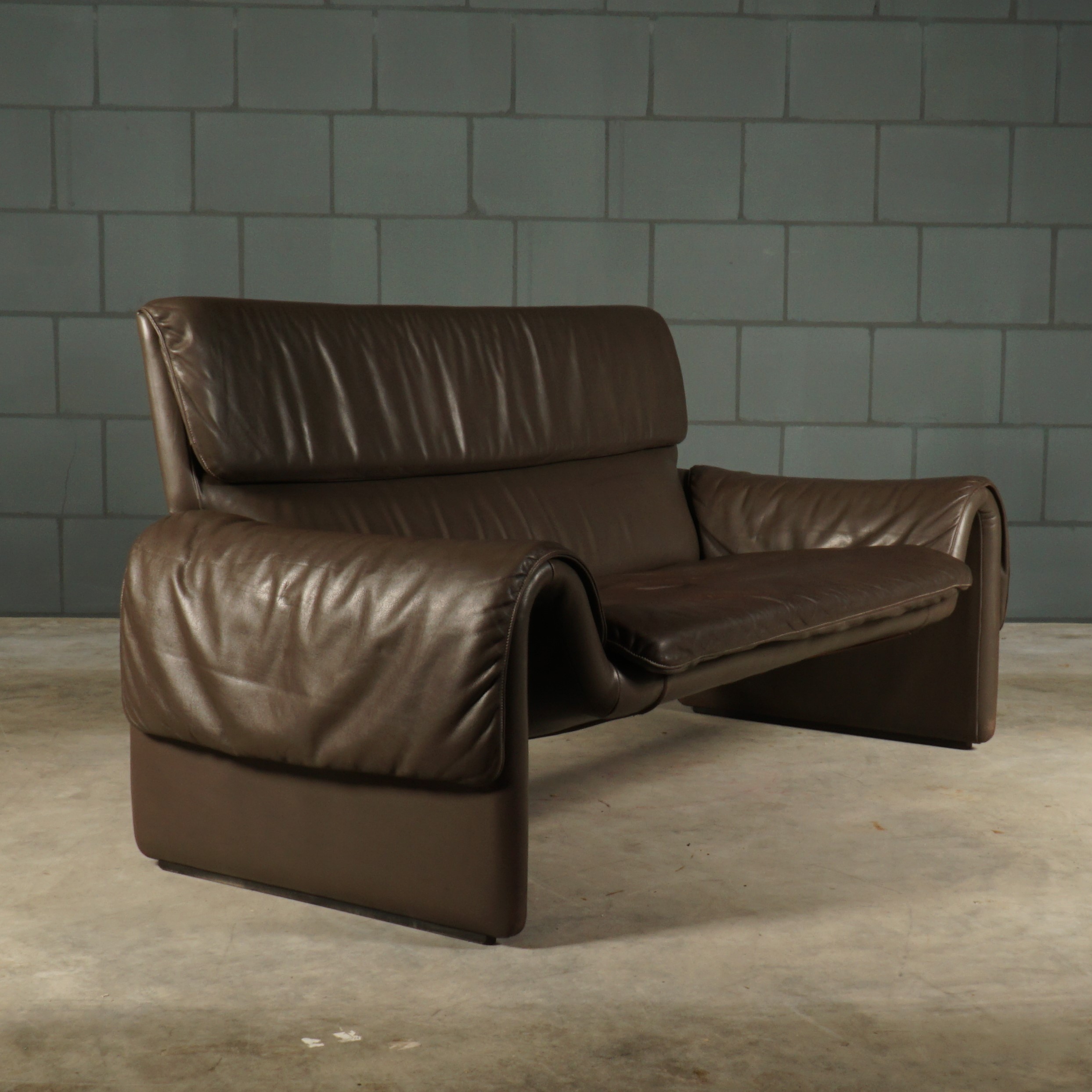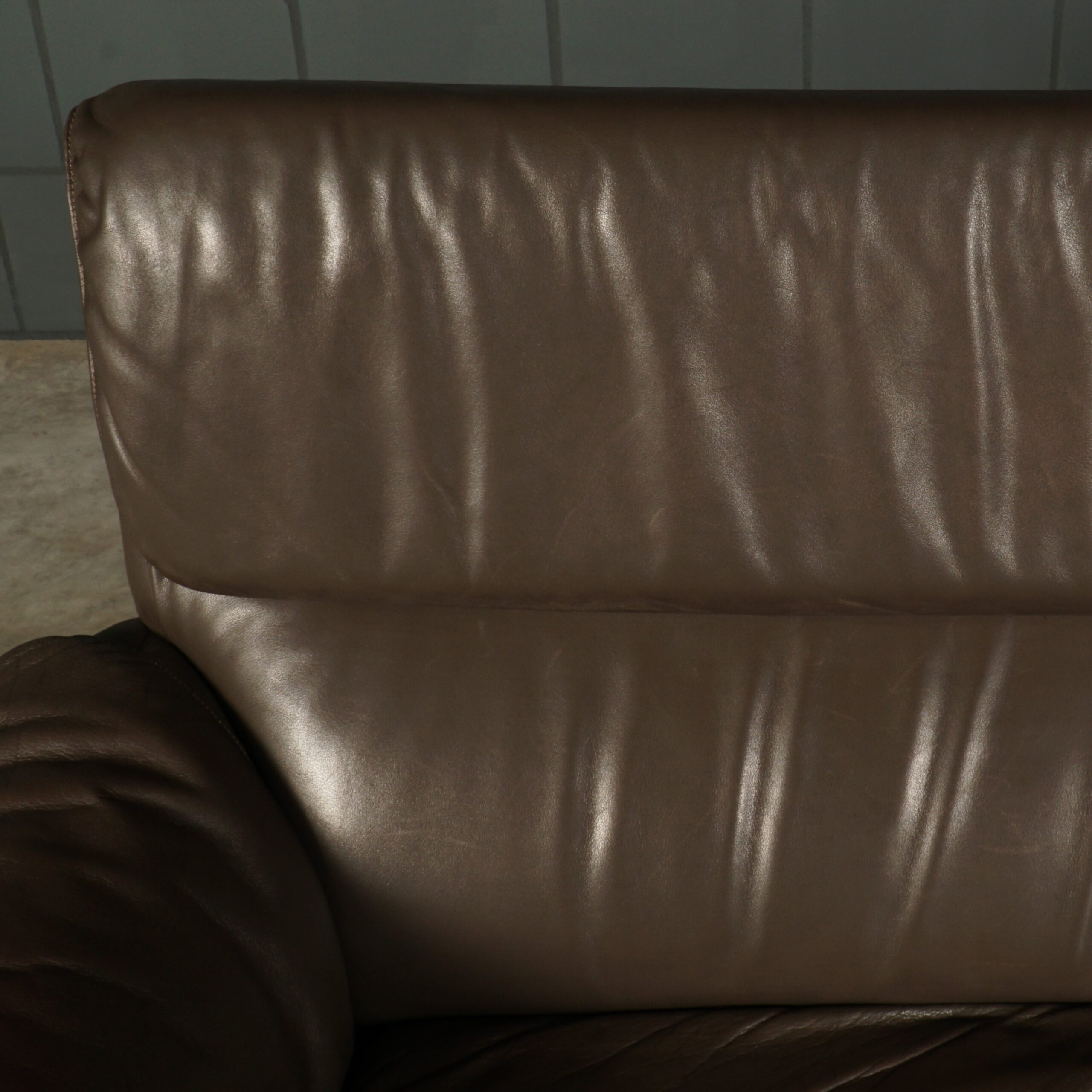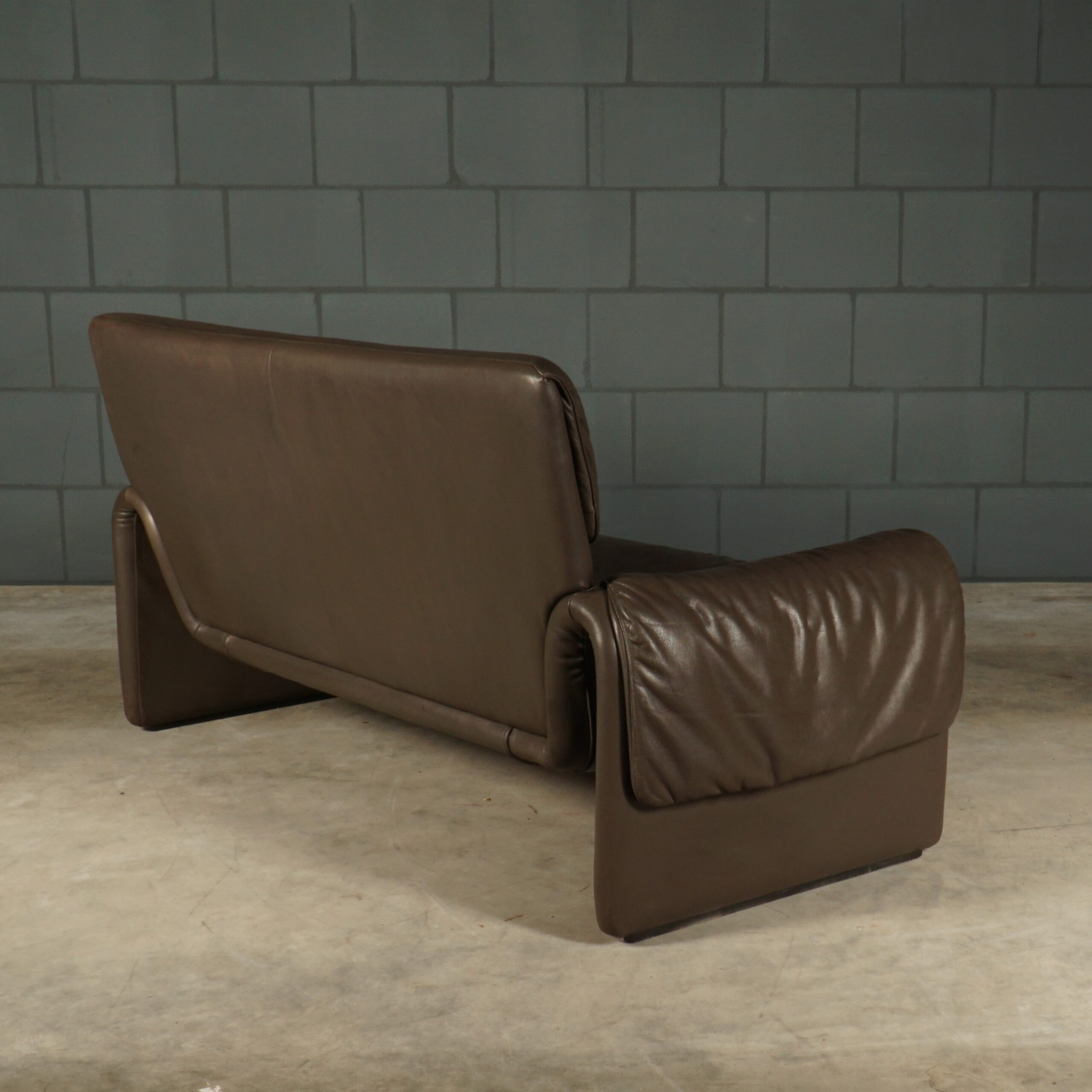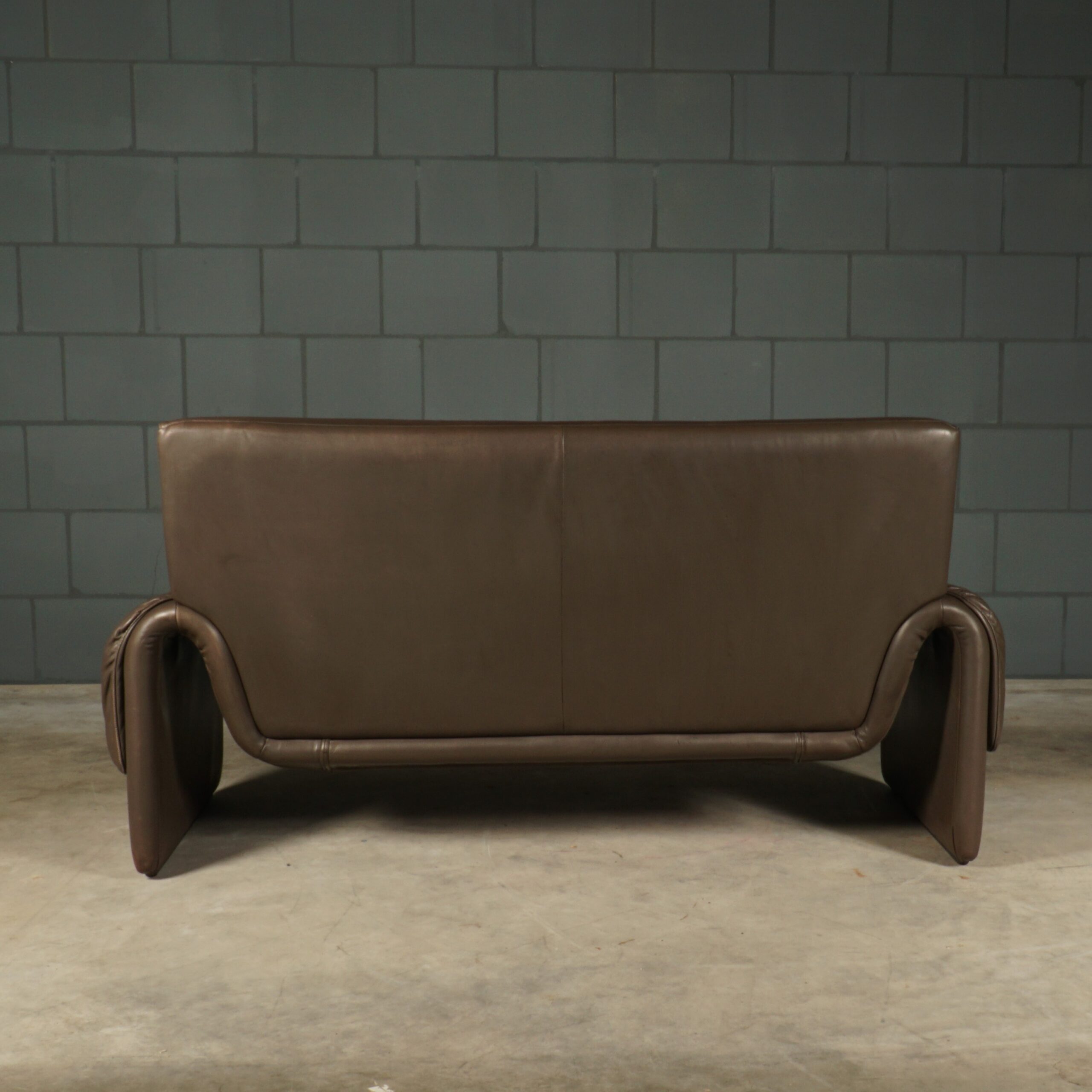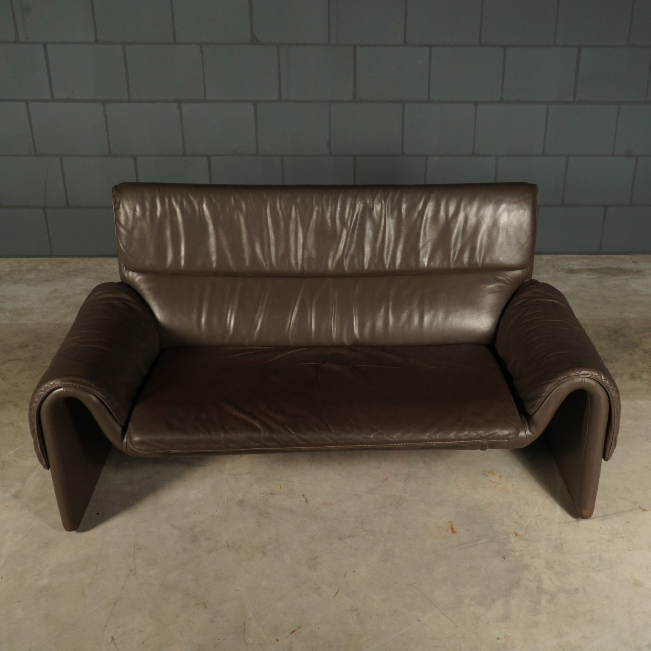 Deze prachtige De Sede DS-2011 bank is ontwikkeld door het Zwitserse team van de Sede in de jaren 1980. Het ontwerp is uniek en tijdloos. Het stalen buisframe maakt een compacte vormgeving mogelijk. Door de royale bodemspeling kijk je er onder door en dat maakt het luchtig en dat geeft een ruimtelijke beleving. De basis is strak maar de kussens zijn zacht en geven naast comfort een bewust nonchalant contrast. De bank heeft een bijzondere bruine kleur met een vleugje grijs. De bank is in hele mooie staat met slechts lichte gebruikssporen.