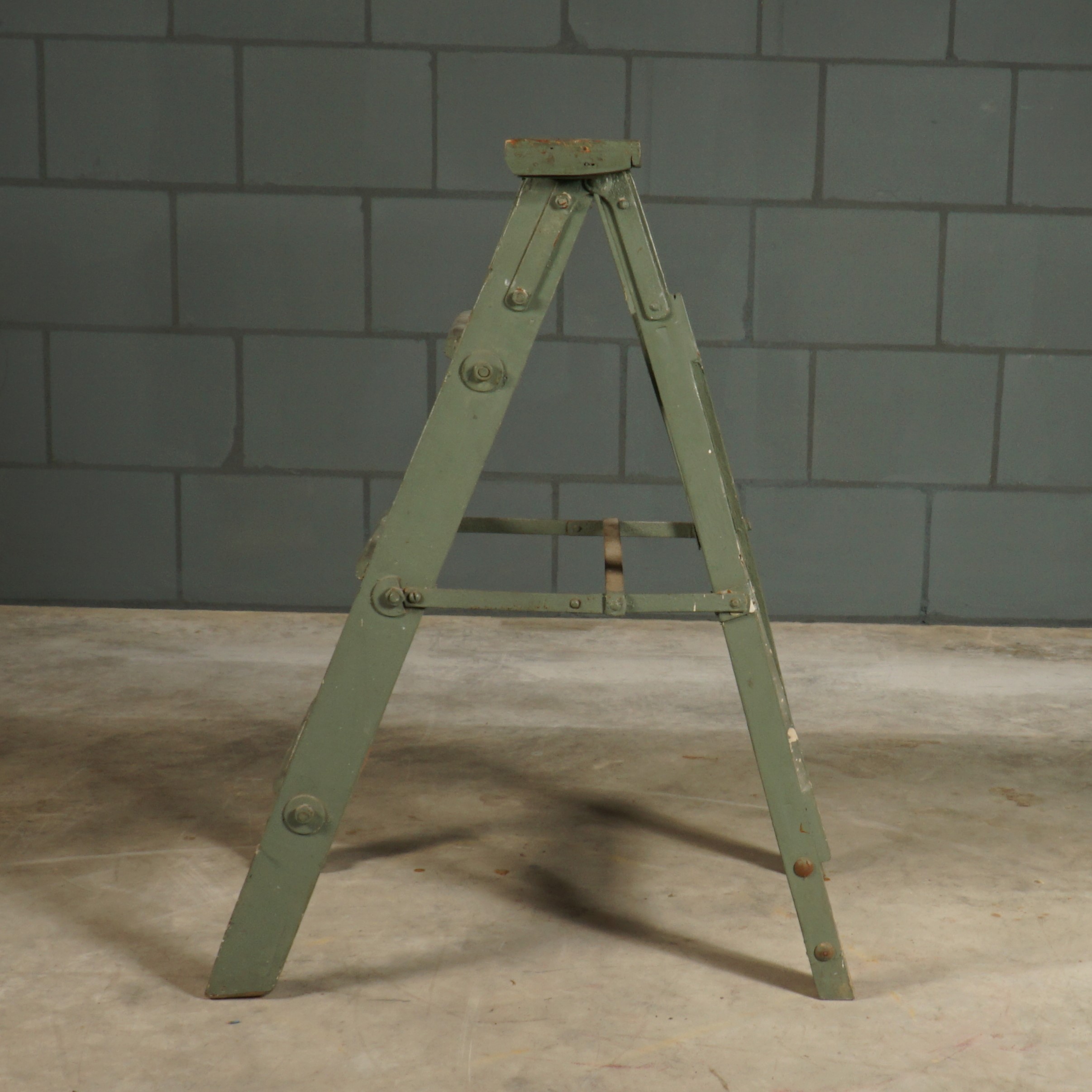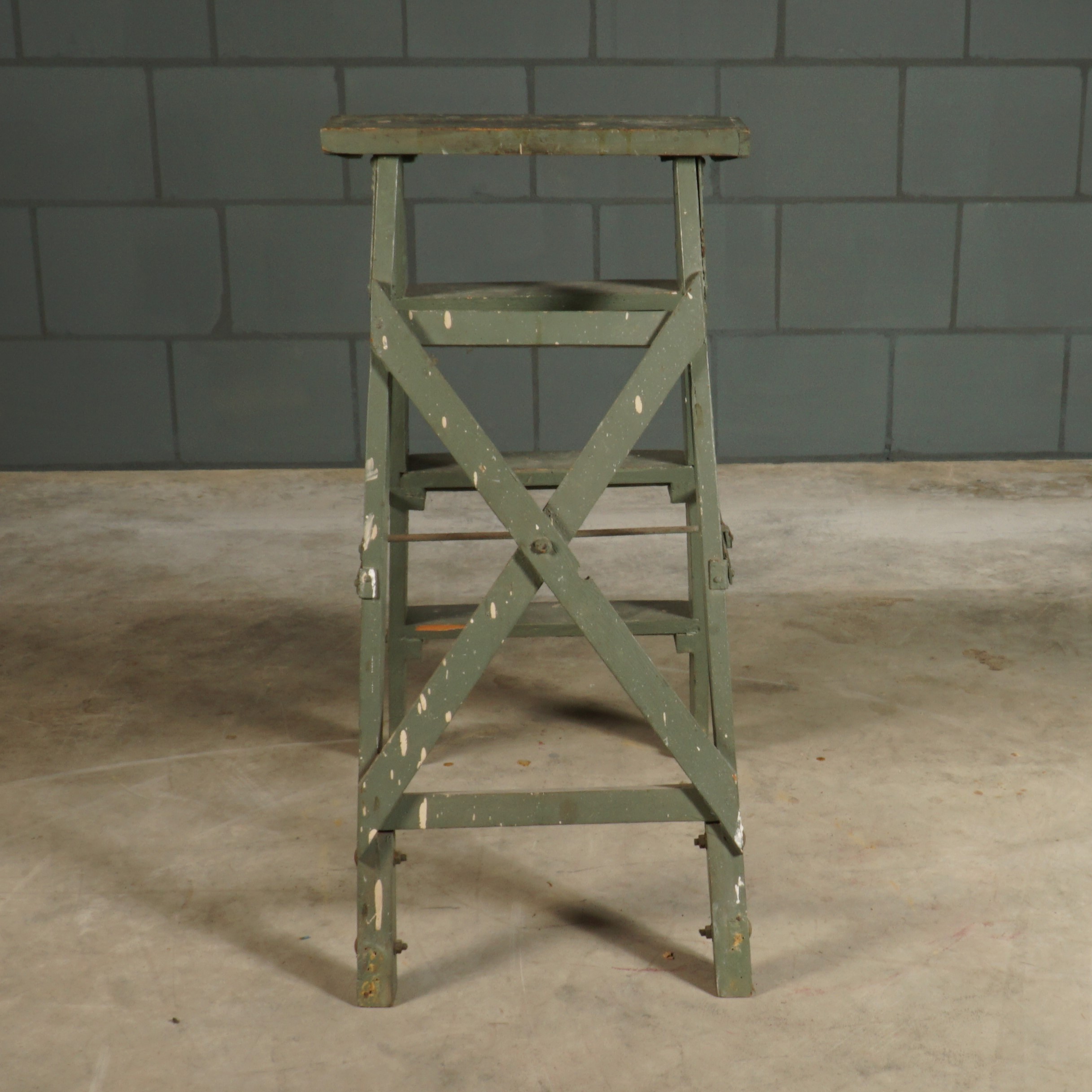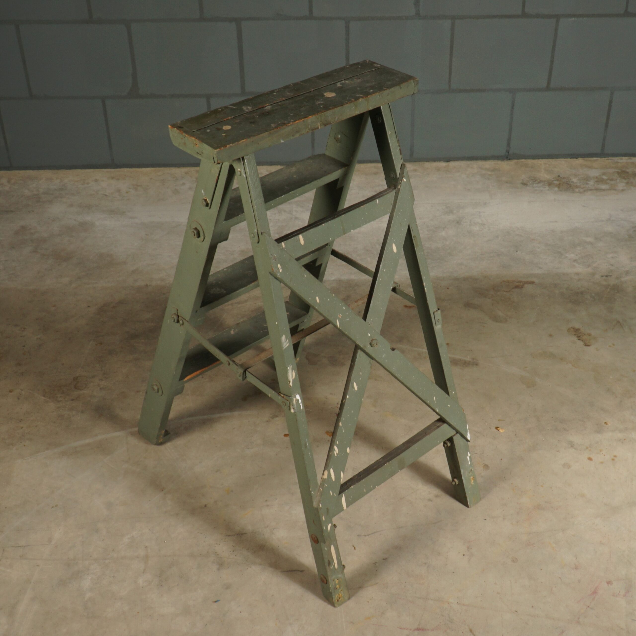 Dit leuke brocante keukentrapje/schilderstrapje komt uit Frankrijk en dateert uit de jaren 80. Het trapje heeft 4 treden en is inklapbaar. Ook heel leuk als plantentafel of ter decoratie met wat fotolijstjes en kaarsjes. De trap heeft een geweldige kleur en patina gekregen. Het trapje is heel stevig en ook prima te gebruiken als keukentrap.