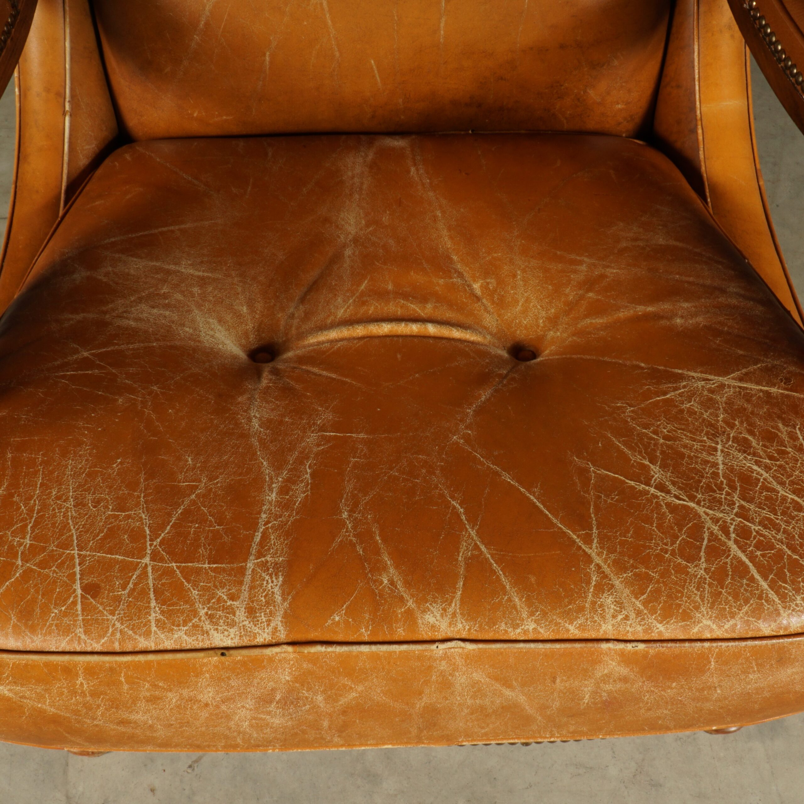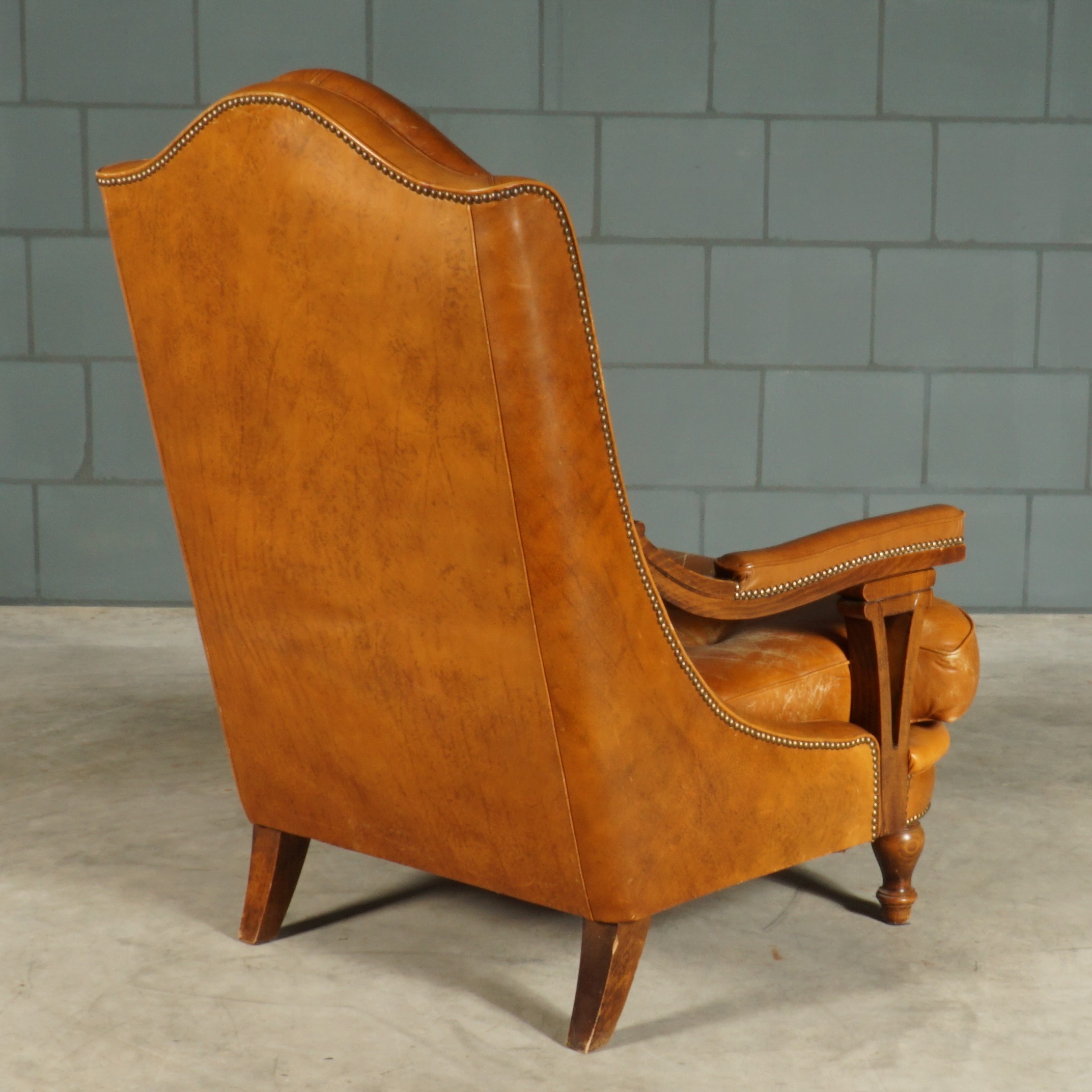 Dit juweeltje is op een zeer mooie manier oud geworden en vertelt door de prachtige patina en gebruikerssporen haar verhaal. De combinatie van het hout en het rundleer maken deze fauteuil net even anders dan de anderen, waardoor deze fauteuil alleen maar meer opvalt. Prachtige details en mooi rondom afgewerkt met metalen nageltjes. Degene die deze unieke eyecatcher in huis neemt, verzekert zichzelf van een heerlijk zittende en warmte uitstralende vriend voor het leven.