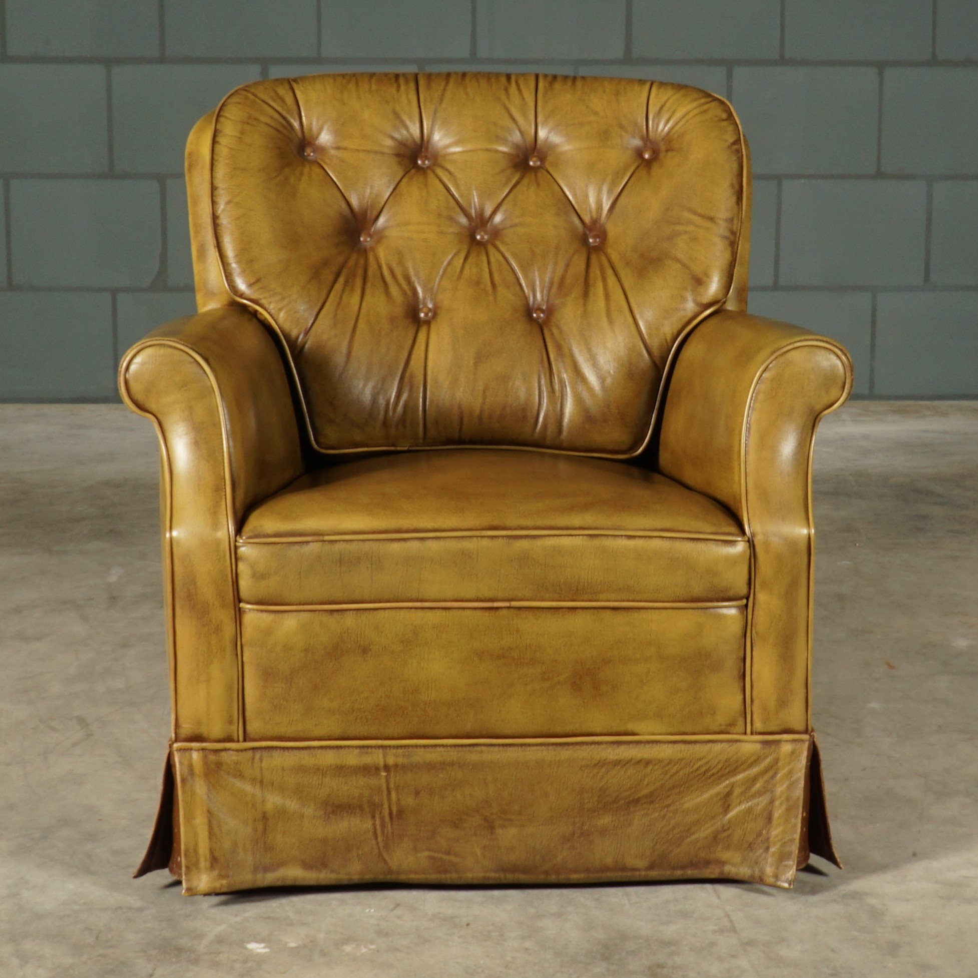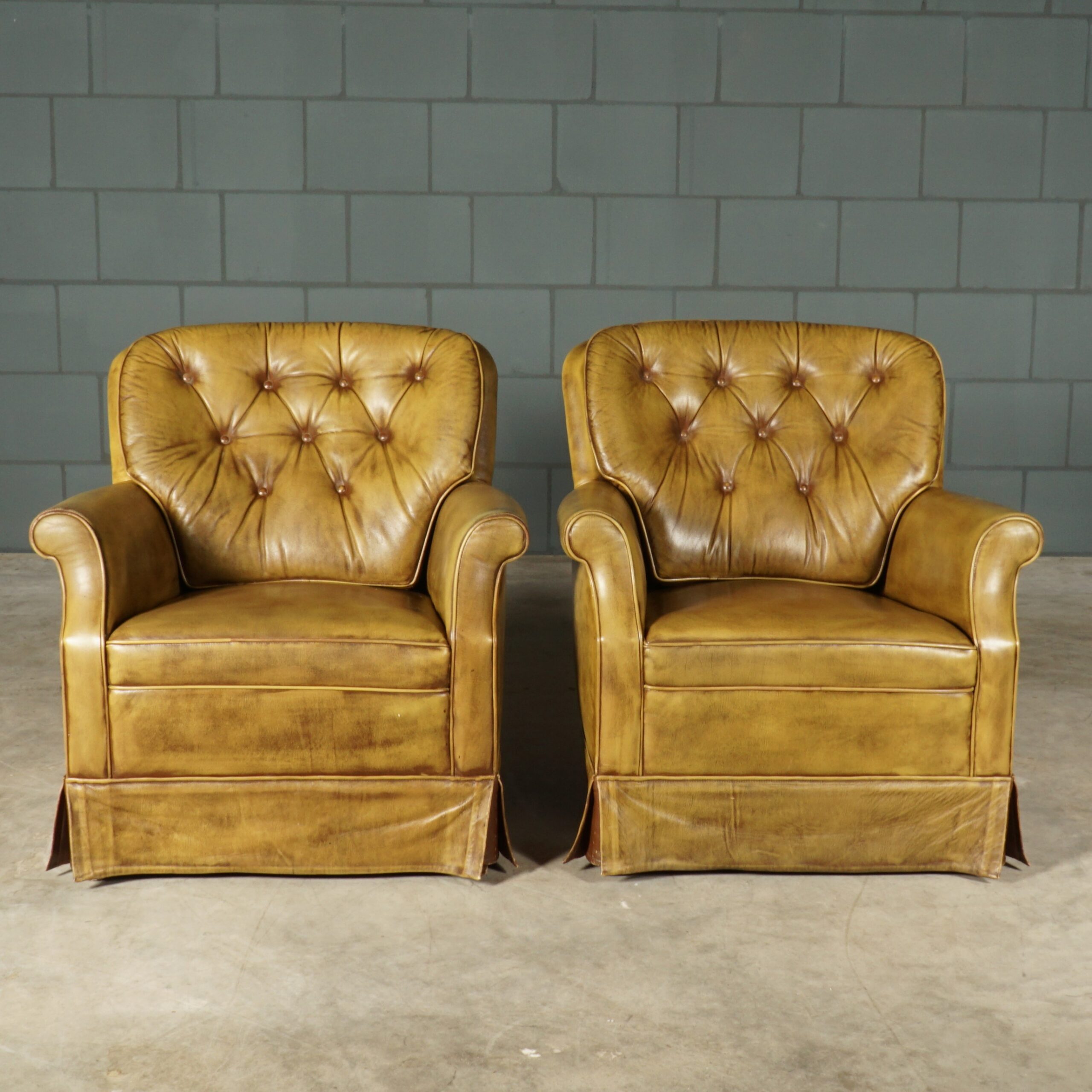 Wat een bijzondere beauty’s, deze prachtige groen lederen Chesterfield fauteuils. De fauteuils zijn gemaakt van een prachtige kwalitatief leder en hebben een opvallende gecapitonneerde rugleuning. De fauteuils hebben een heerlijk comfortabele zit, dat zie je er gewoon aan af! Echte eye-catchers uit de ‘seventies’ voor in een leeshoek of serre, waarin je uren kunt genieten van een boek of een drankje. De stoelen zijn in hele mooie staat met lichte gebruikssporen.