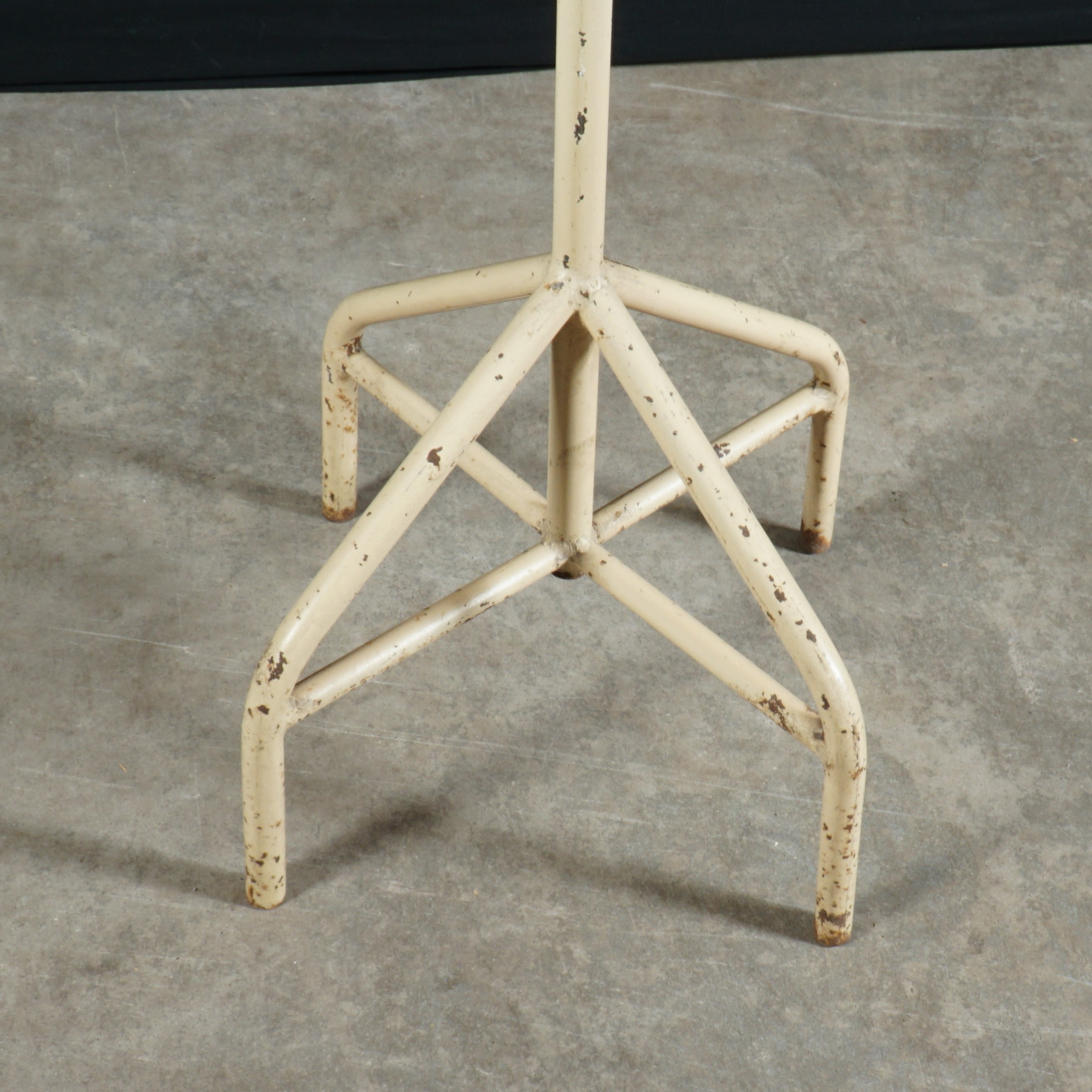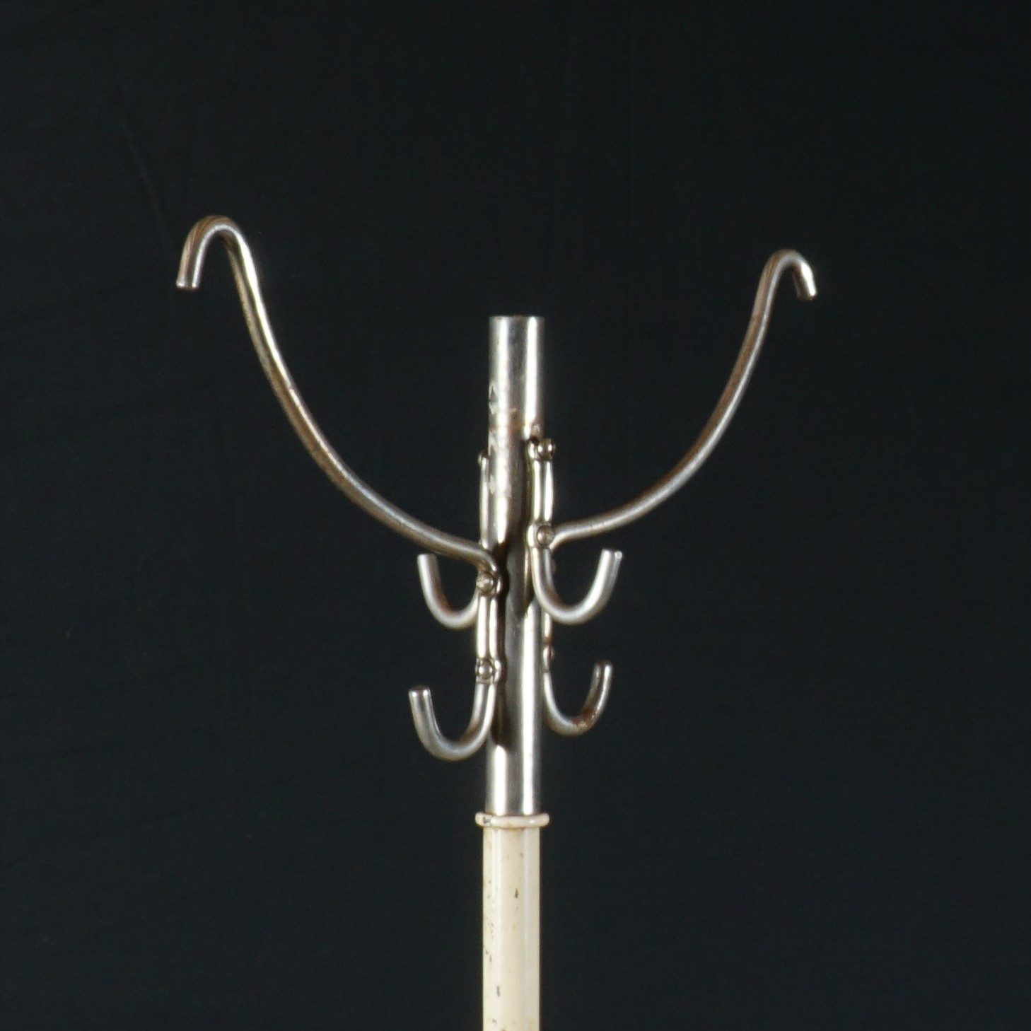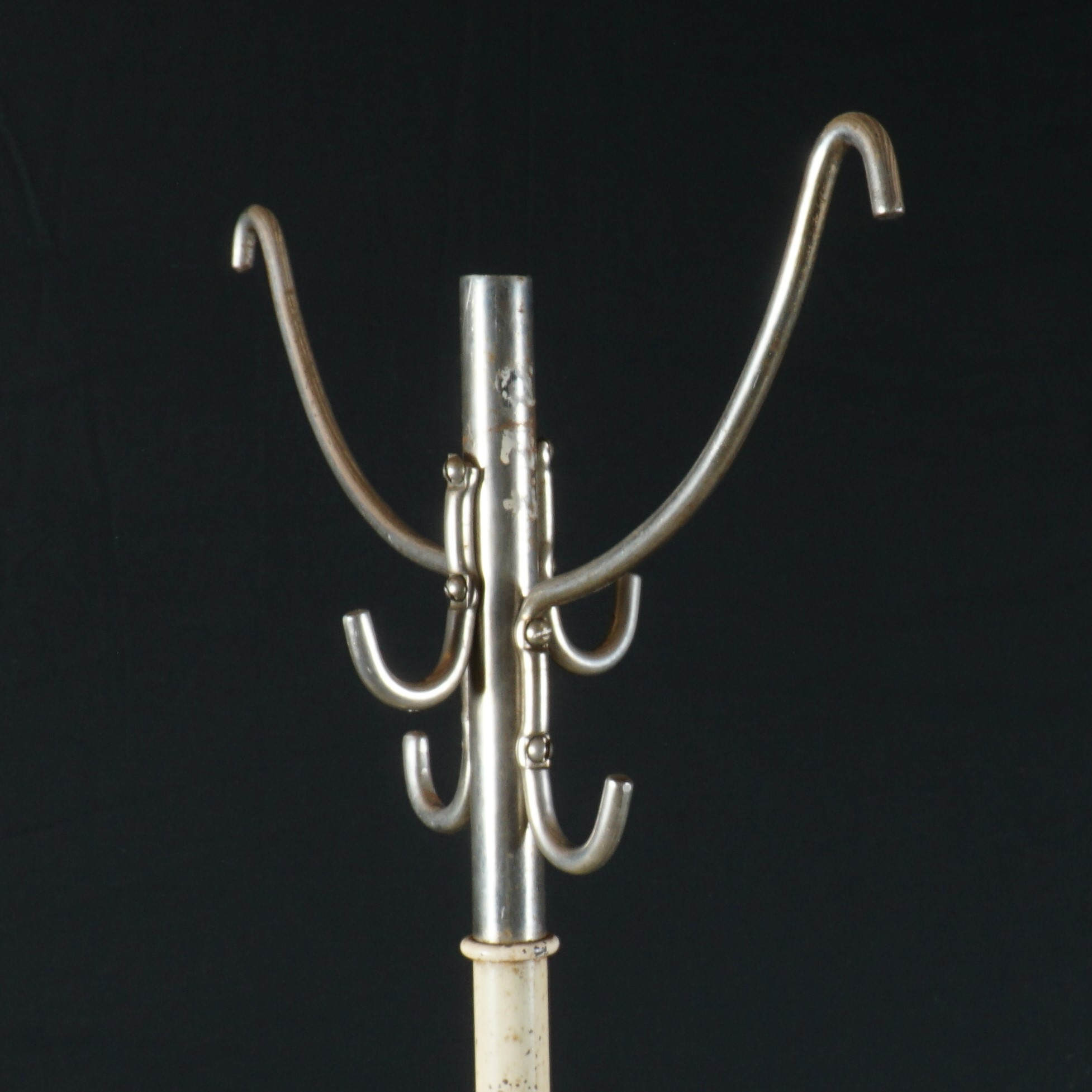 Deze stoere industriële kapstok staat stevig op zijn poten en heeft 2 lange en 4 kortere gekrulde stalen haken. Wat een bijzonder mooi industrieel ogende kapstok is dit. Het staal heeft een fraai patina in kleur en lichte roestvorming gekregen.