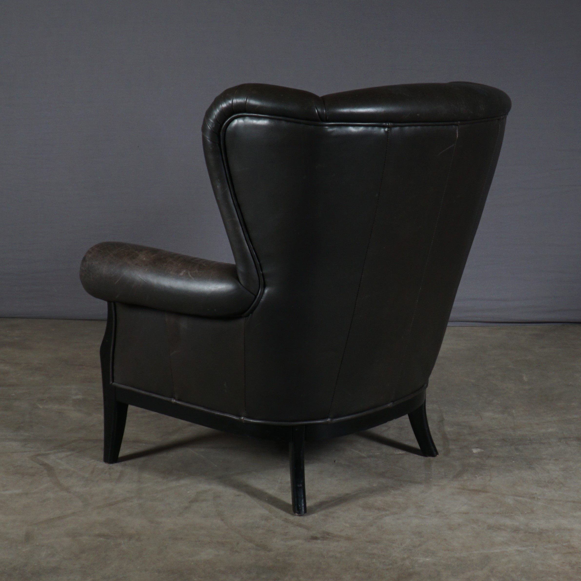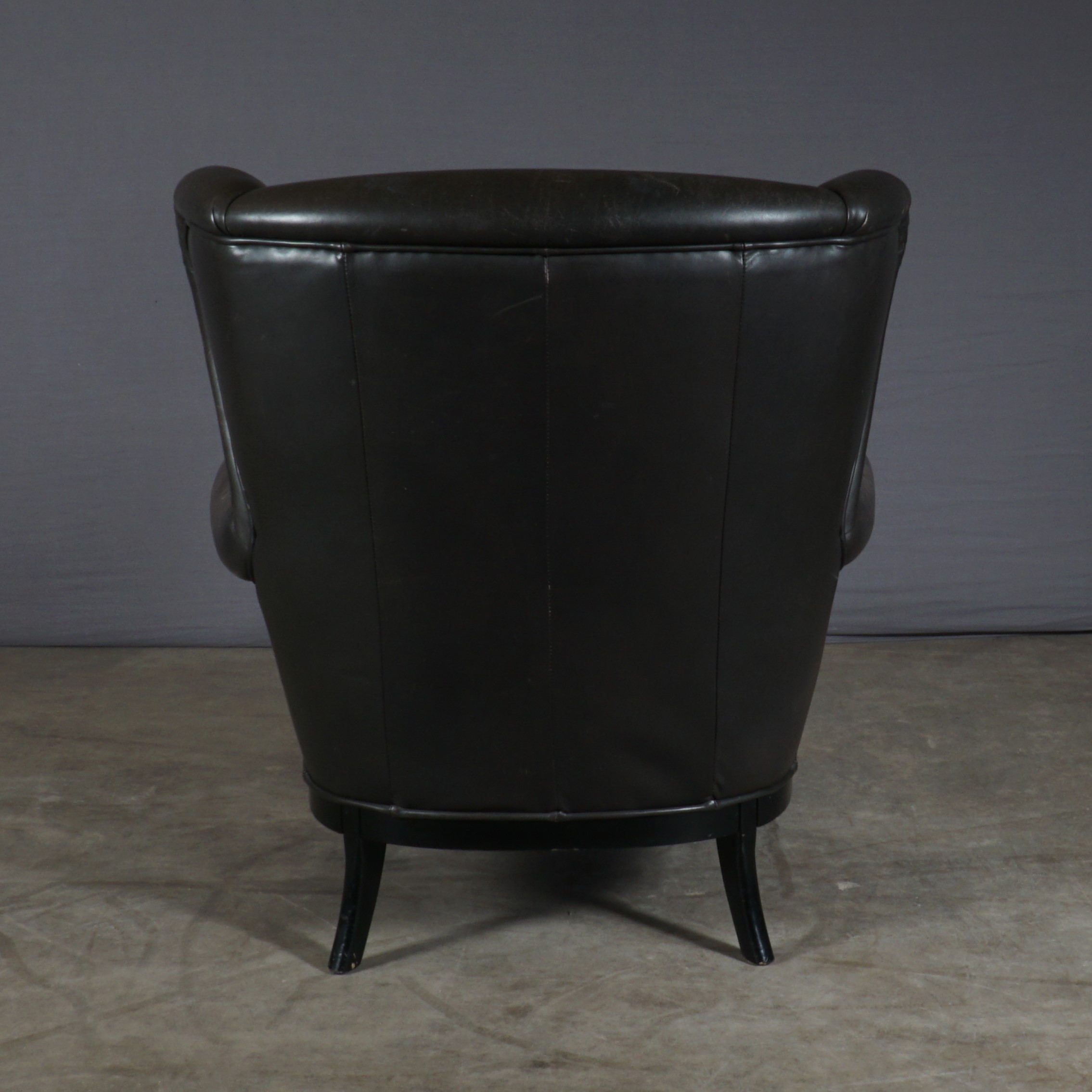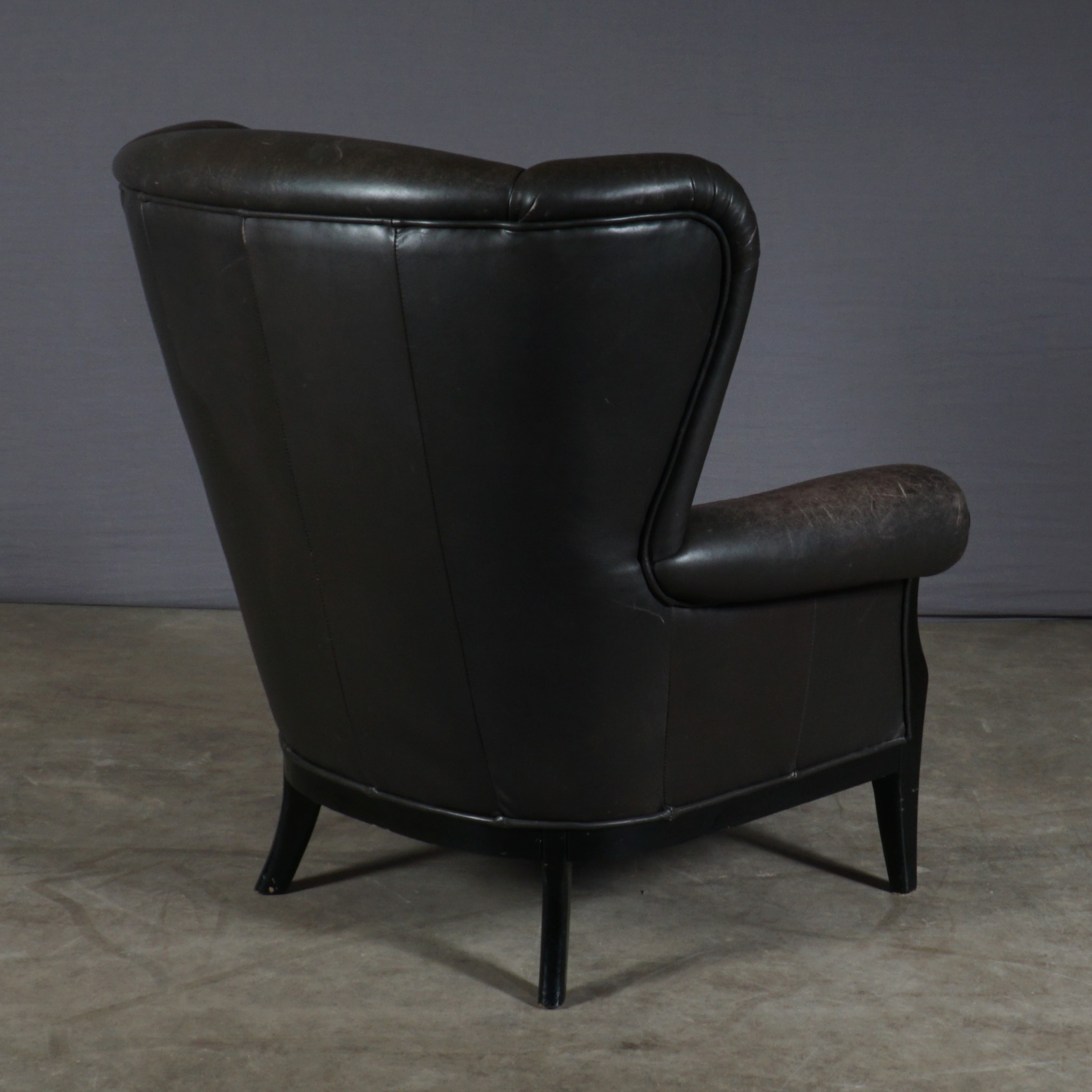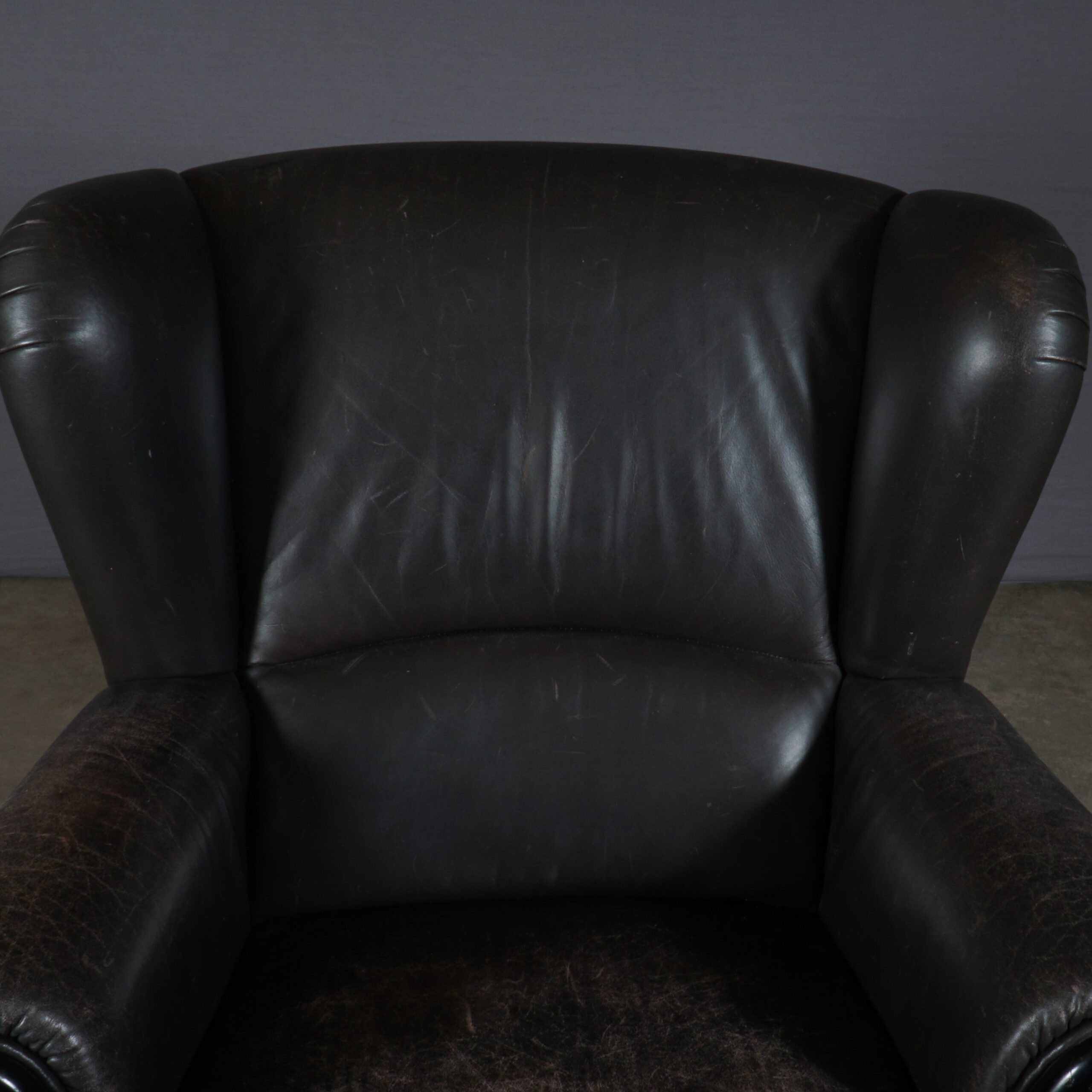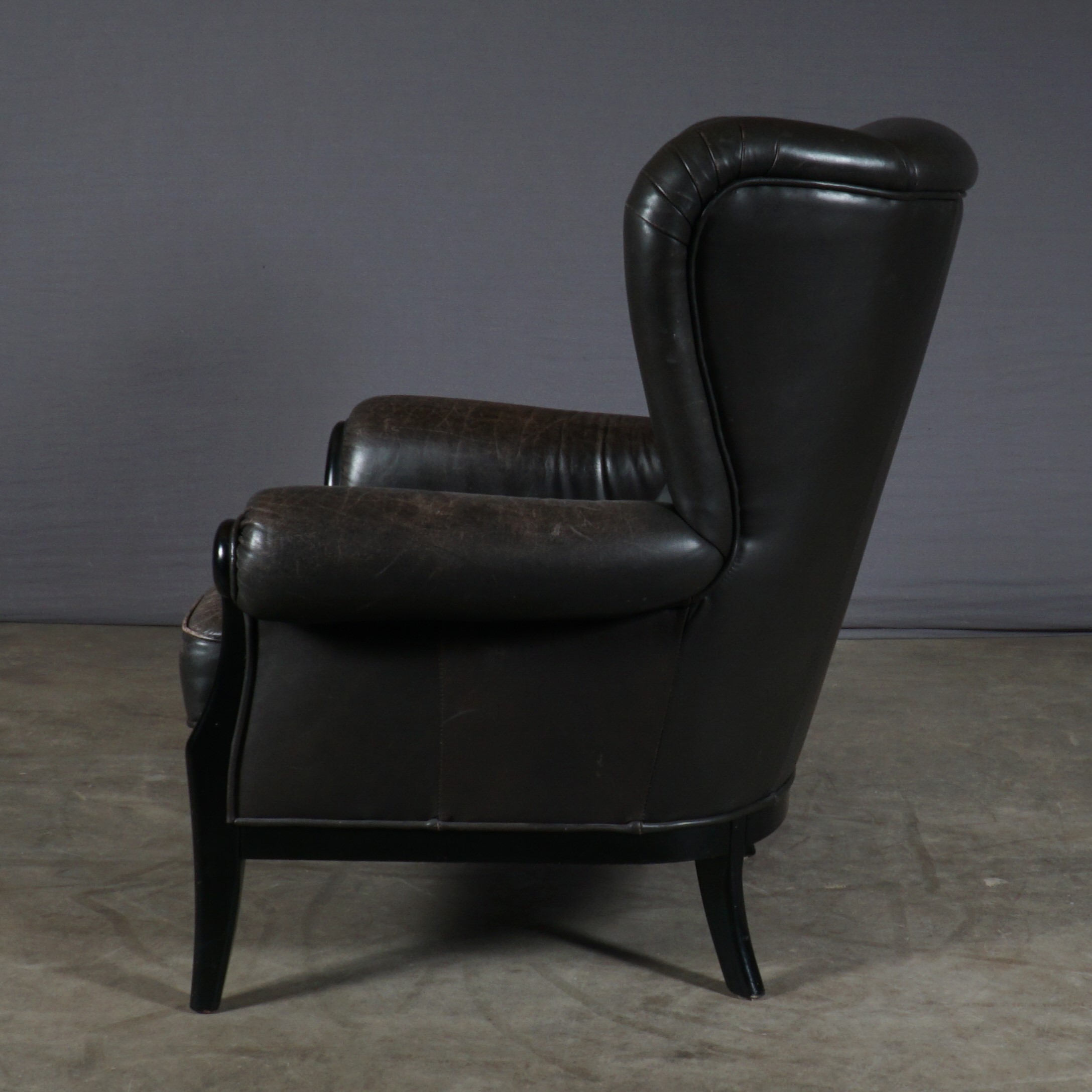 Deze prachtige vintage oorfauteuil is een geweldige combinatie van stijlvol design en gemak. Deze fauteuil bestaat uit een zwart houten frame en heeft een prachtige bruin lederen bekleding. De gevoerde zitting en rugleuning bieden je een stevige maar zeer comfortabele zit. De fauteuil is in mooie vintage staat, waarbij het leer in de loop der jaren een prachtige patina heeft gekregen. Een heerlijke stoel met een stoere uitstraling!
