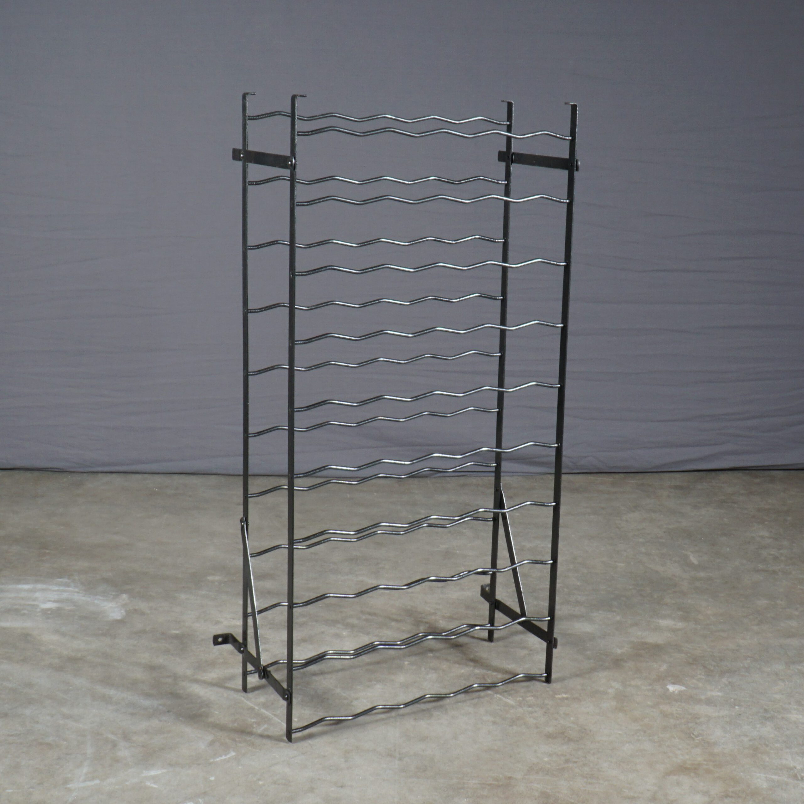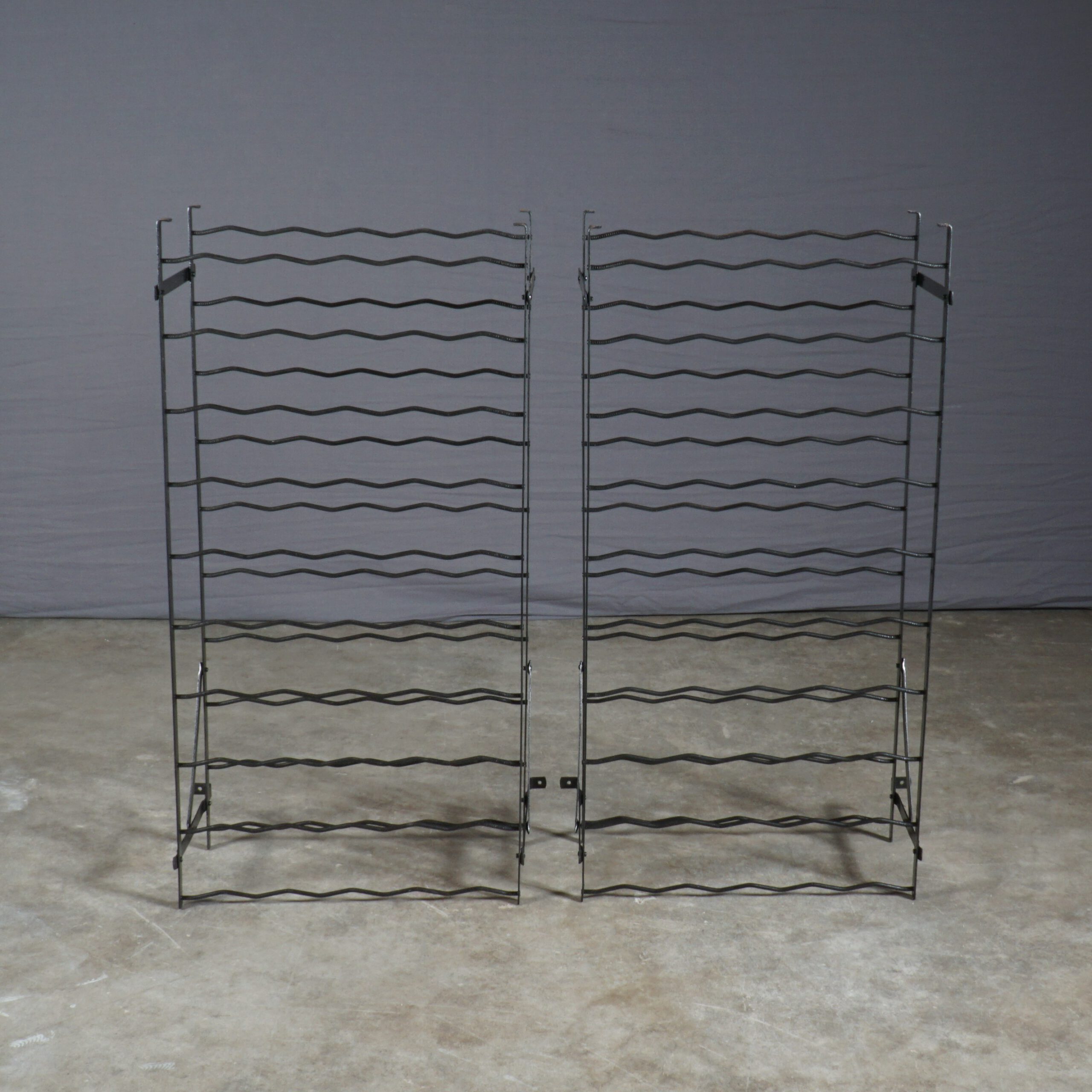 Wanneer u een hoop ruimte wilt besparen en uw wijnflessen tegelijkertijd een mooi plaatsje in huis wilt geven, dan zijn deze zwarte metalen wijnrekken ideaal. Je kunt de rekken met een beugel vastmaken aan een muur, zodat de rekken niet om kunnen vallen. De wijnrekken zijn in hele mooie vintage staat.