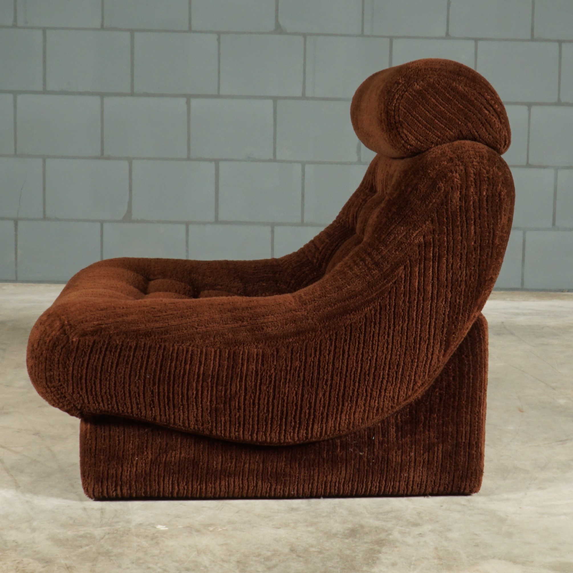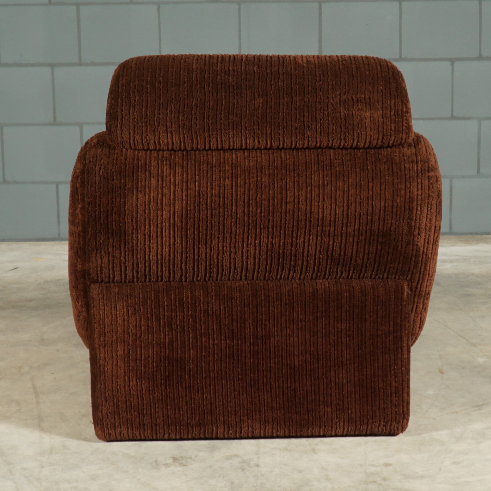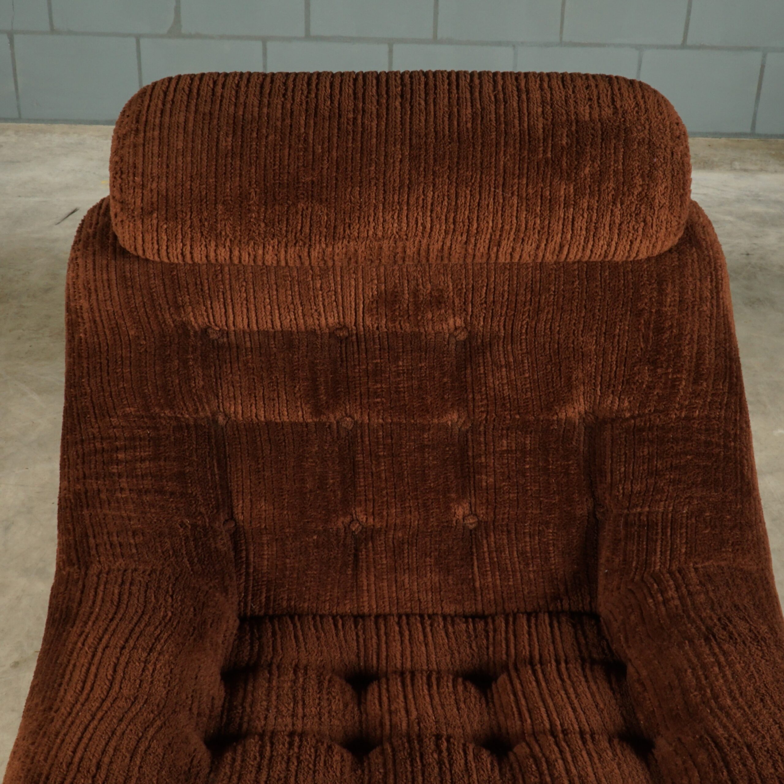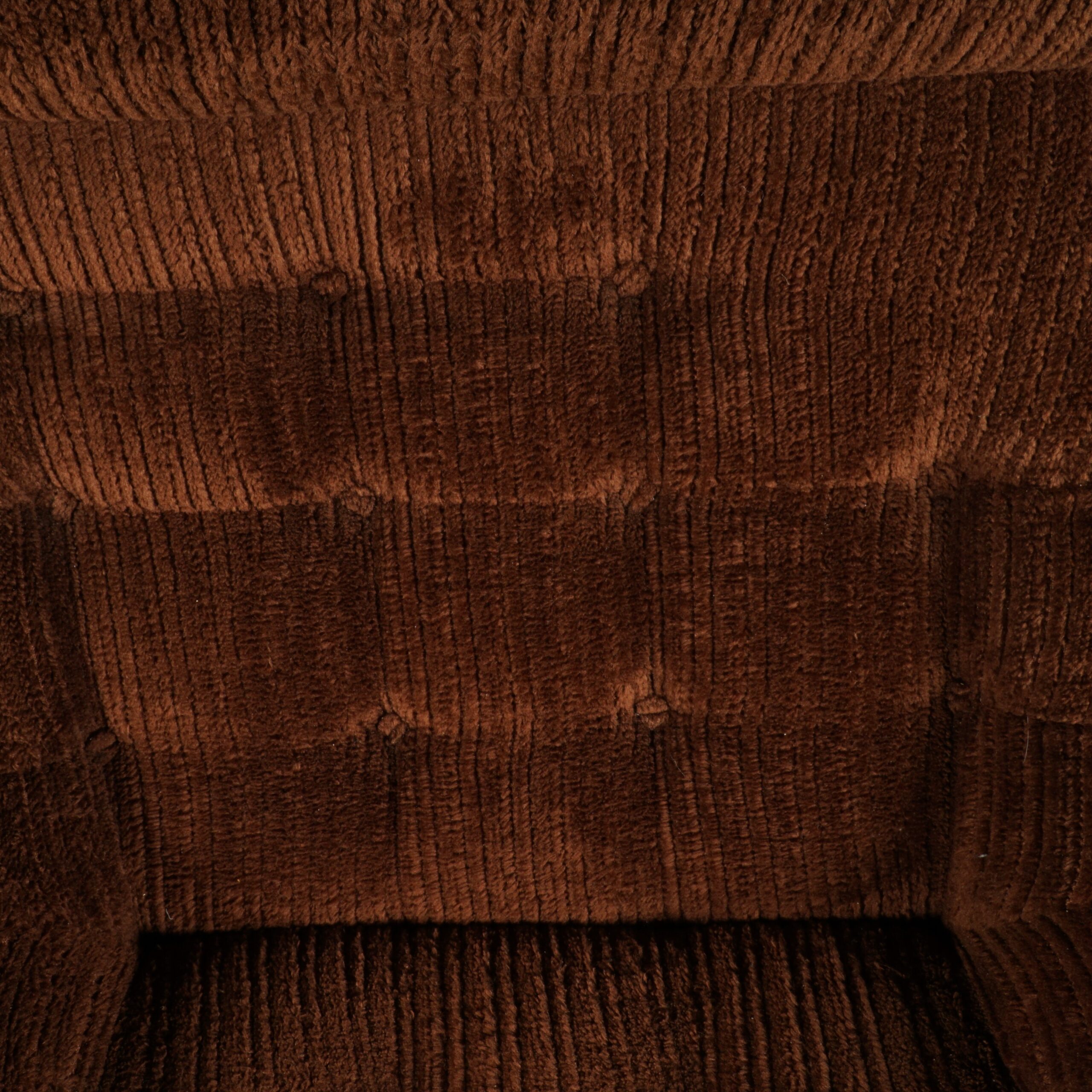 Deze toffe fauteuils, in donkerbruine ribstof, komen uit Duitsland en dateren uit de jaren 70. De fauteuils hebben een zeer goed zitcomfort en een mooi space age design. De fauteuils zijn rondom gestoffeerd. De modules kunnen worden gebruikt als afzonderlijke fauteuils of worden gekoppeld tot een tweezitsbank. Zorg dat je alle tijd van de wereld hebt, als je neerploft in deze comfortabele juweeltjes. Eenmaal gesetteld, kom je er niet meer uit! Zo heerlijk!! De set is in hele mooie vintage staat met lichte gebruikssporen.