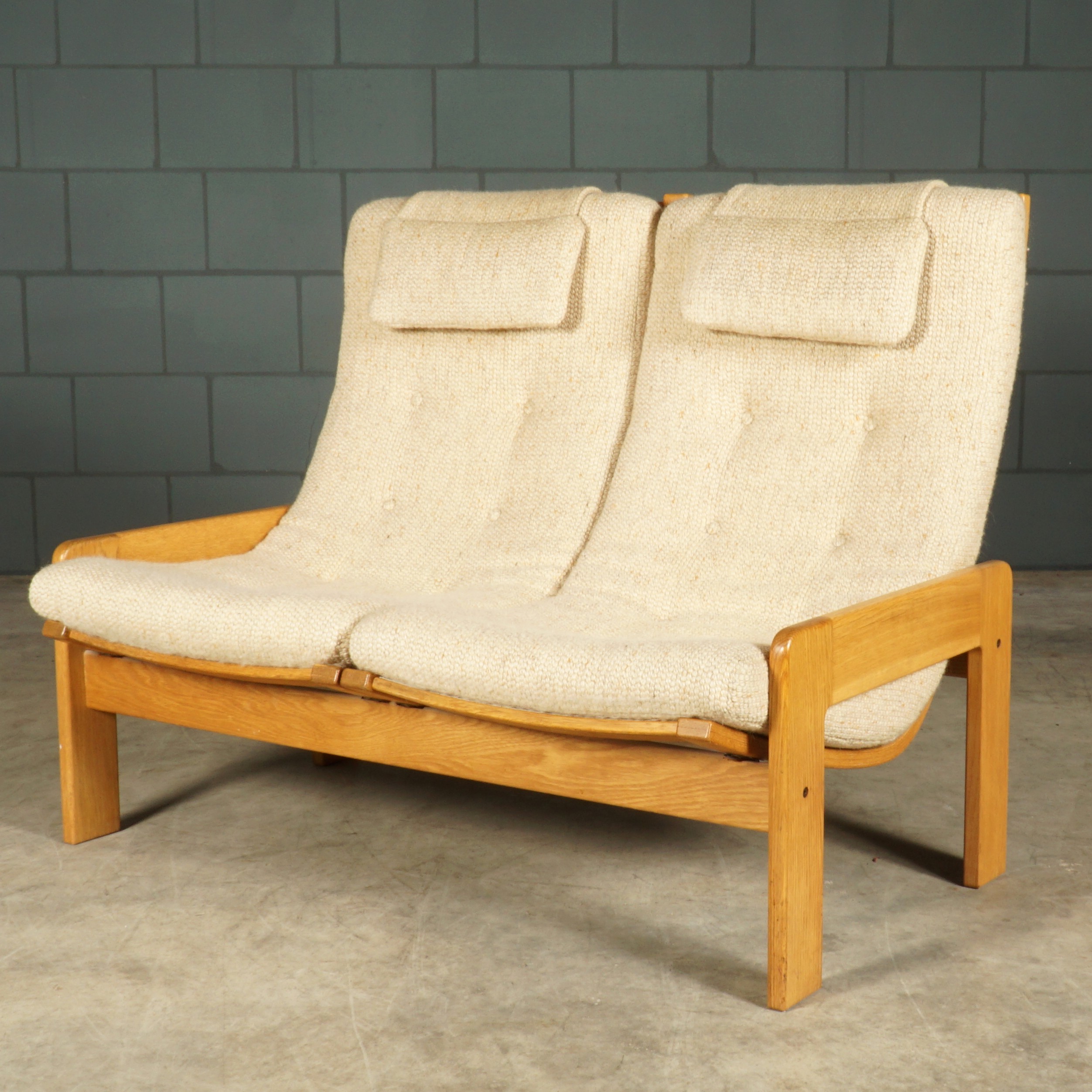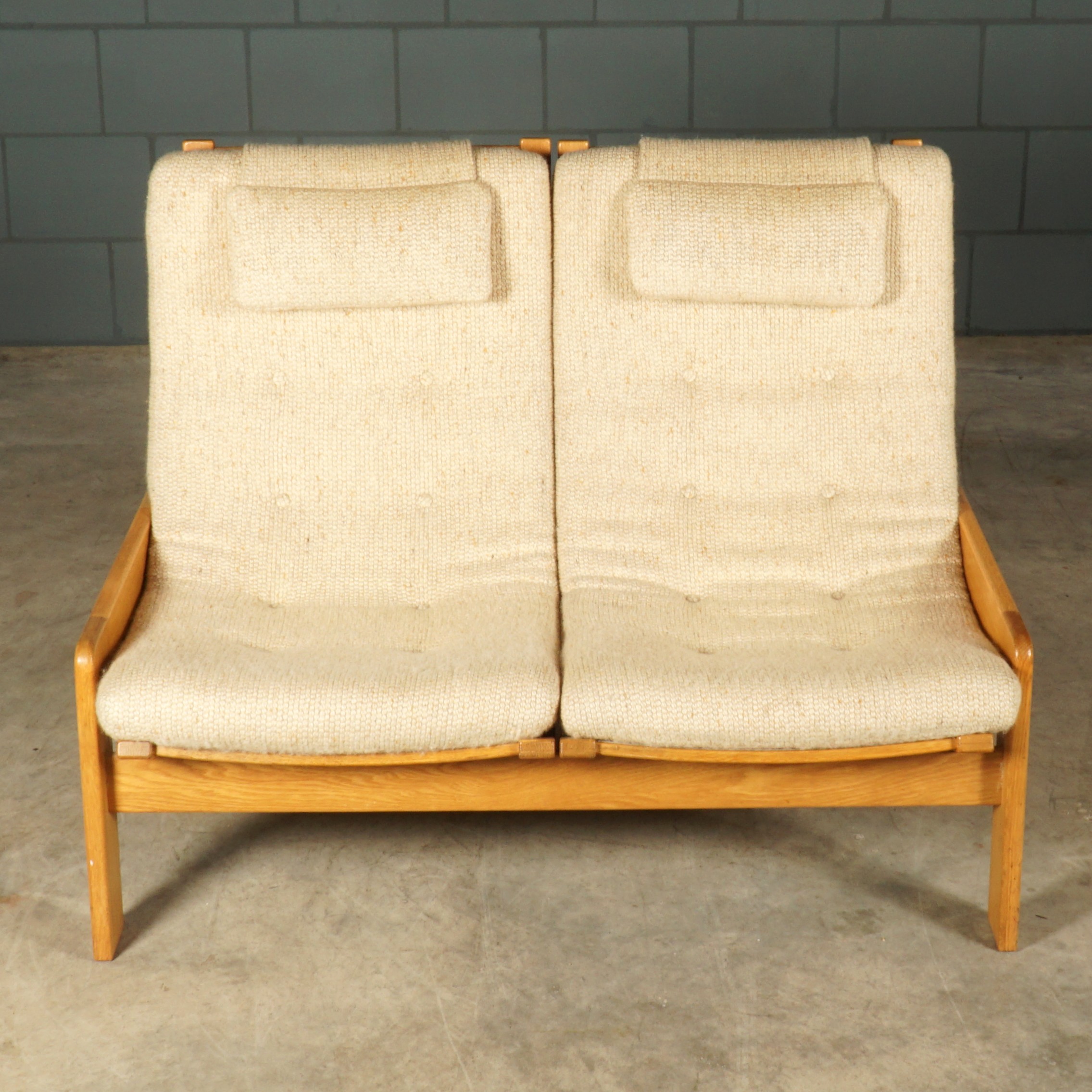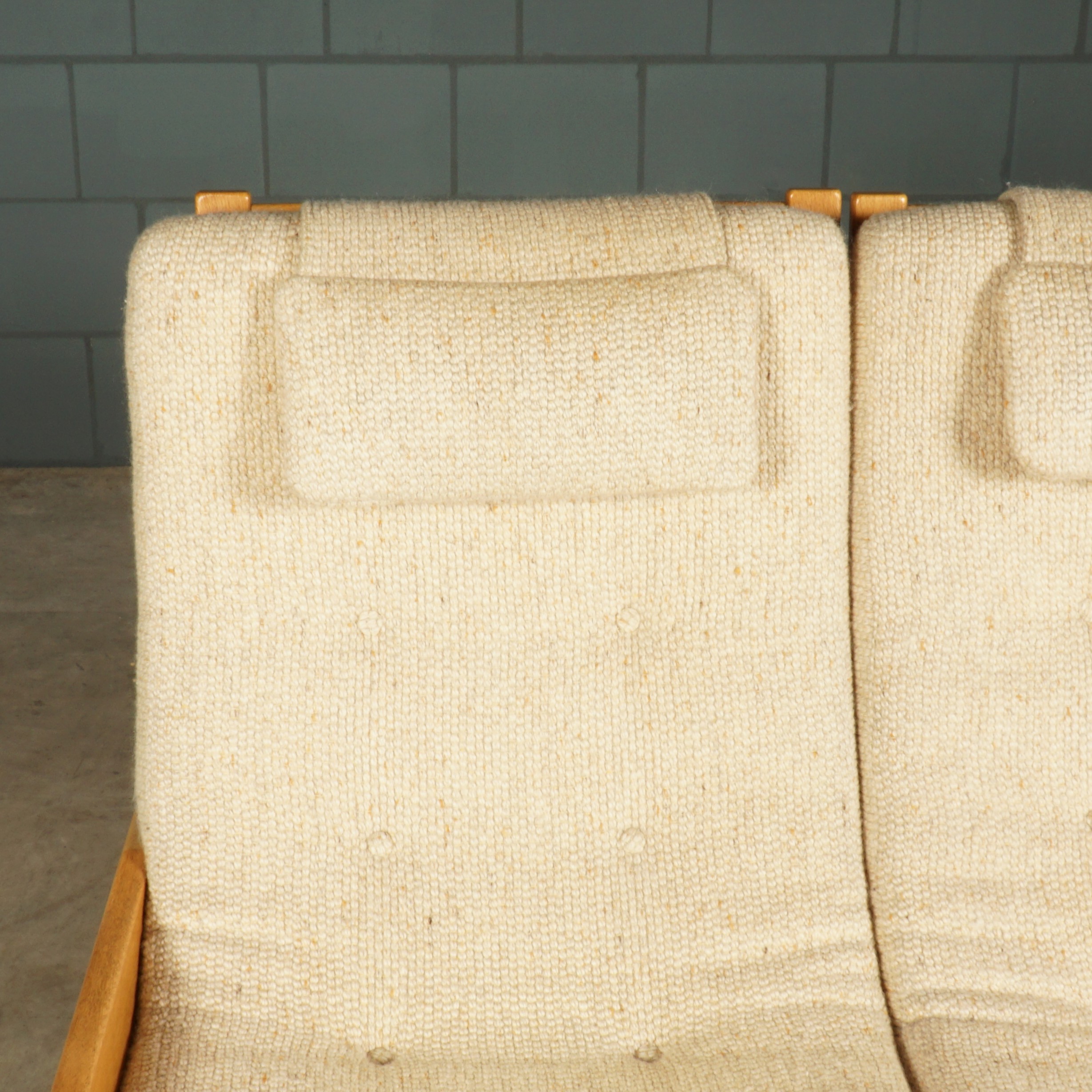 Deze geweldige zithoek, bestaande uit twee tweezistbanken en twee fauteuils is van de Zweedes designer Yngve Ekström en dateert uit de jaren 60. Yngve Ekström was een van de belangrijkste figuren in de ontwikkeling van het Scandinavisch modernisme en medeoprichter van het meubeldesignbedrijf Swedese. Deze set is gemaakt van grenenhouten frames met strakke lijnen en afgeronde hoeken. De banken bestaan uit twee aparte zitgedeeltes naast elkaar met individuele zit- en rugkussens, bekleed met een zachte beige stof met knoopdetails en een extra hoofdkussen voor comfort. Deze set is een fantastisch voorbeeld van Zweeds design uit het midden van de vorige eeuw en voegt een vleugje vintage Scandinavische stijl toe aan elke moderne woonruimte. De set is in hele mooie staat met zeer geringe gebruikssporen.
