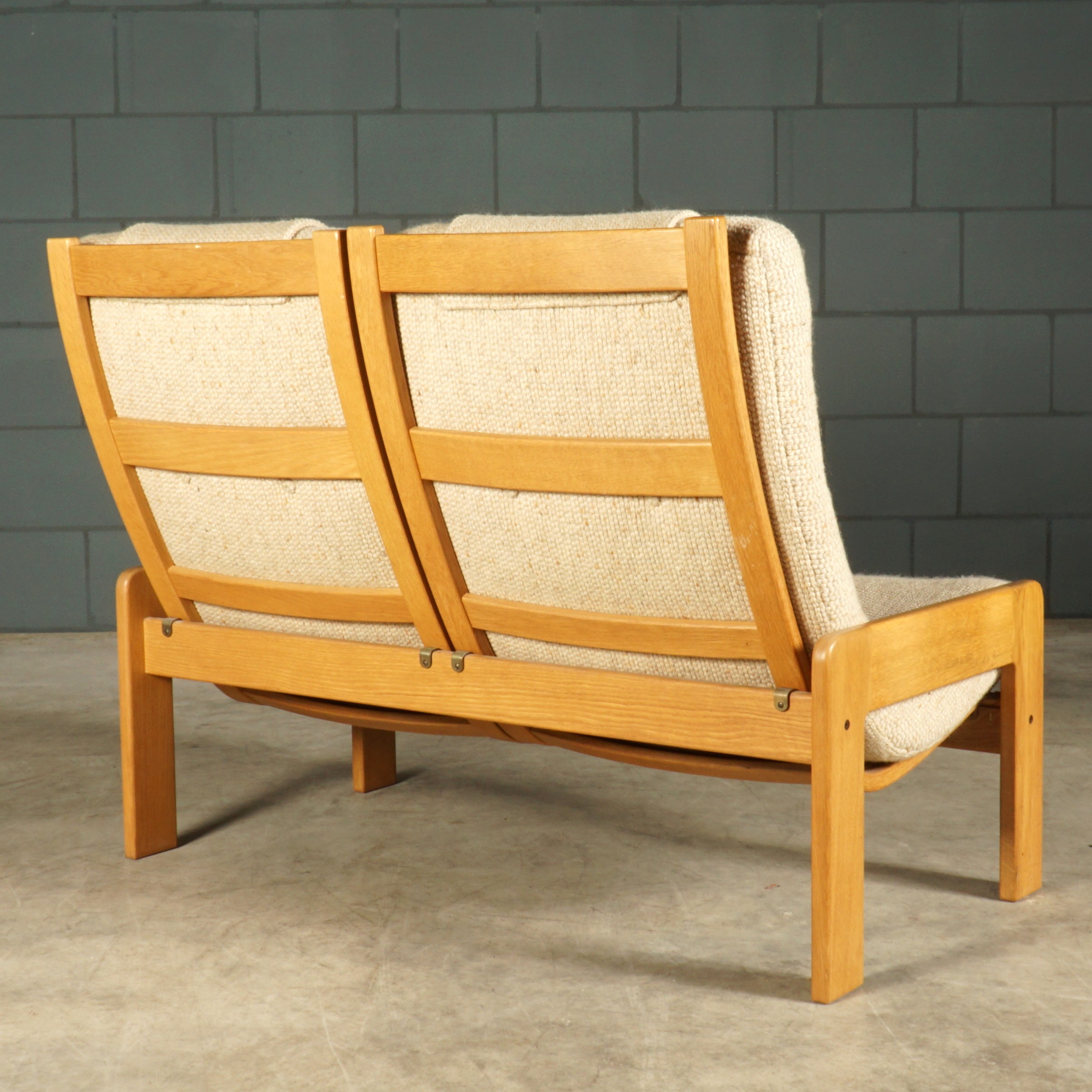 Afmetingen bank: 120 cm breed, 86 cm diep, 98 cm hoog, 49 cm zitdiepte, 43 cm zithoogte.