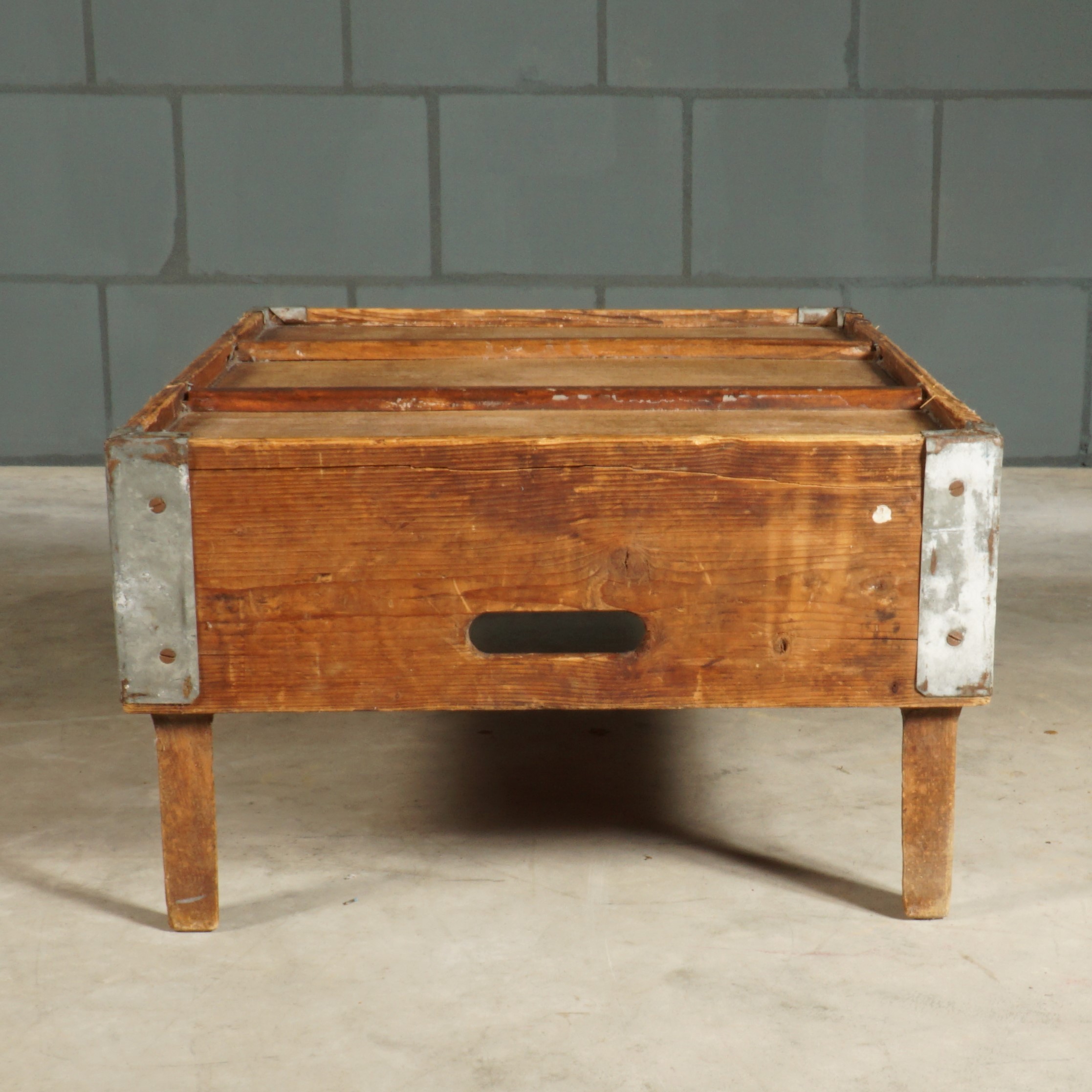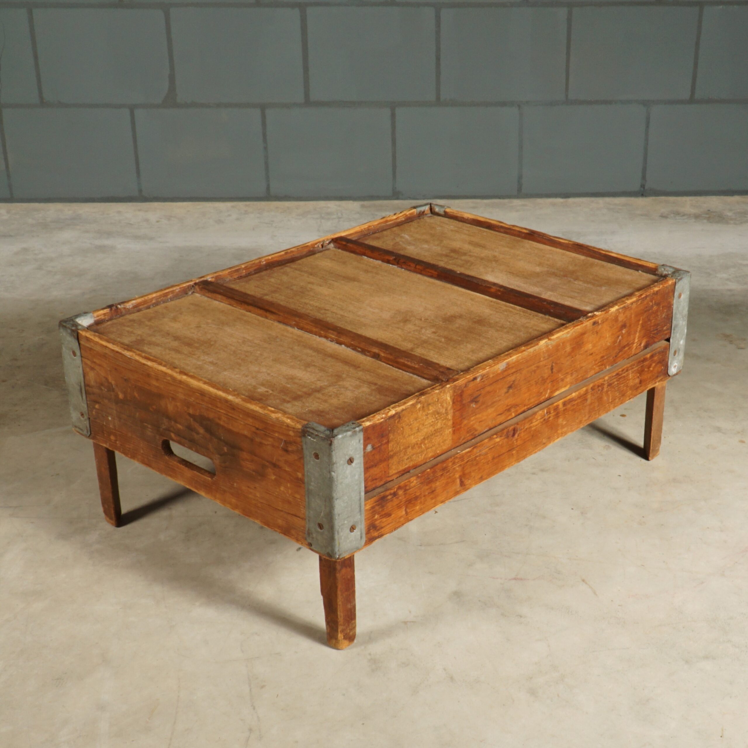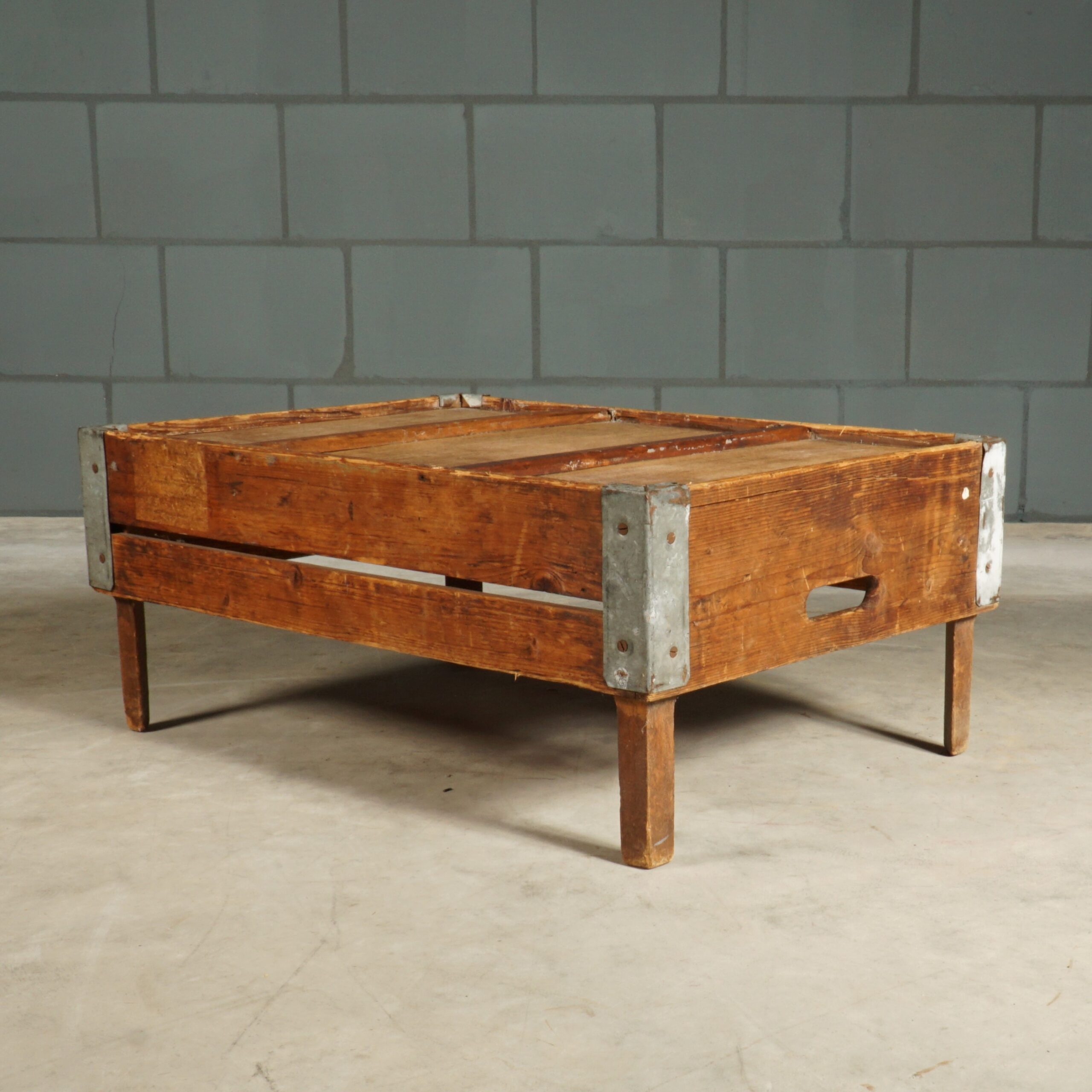Dit toch al leuke tafeltje is door de tand des tijds alleen maar nog leuker geworden! Waarschijnlijk afkomstig uit Frankrijk, een oud houten kistje omgetoverd tot tafeltje met stoere metalen hoekprofielen. Een uniek tafeltje dat een fantastische aanvulling zal zijn in elk vintage of industrieel interieur.