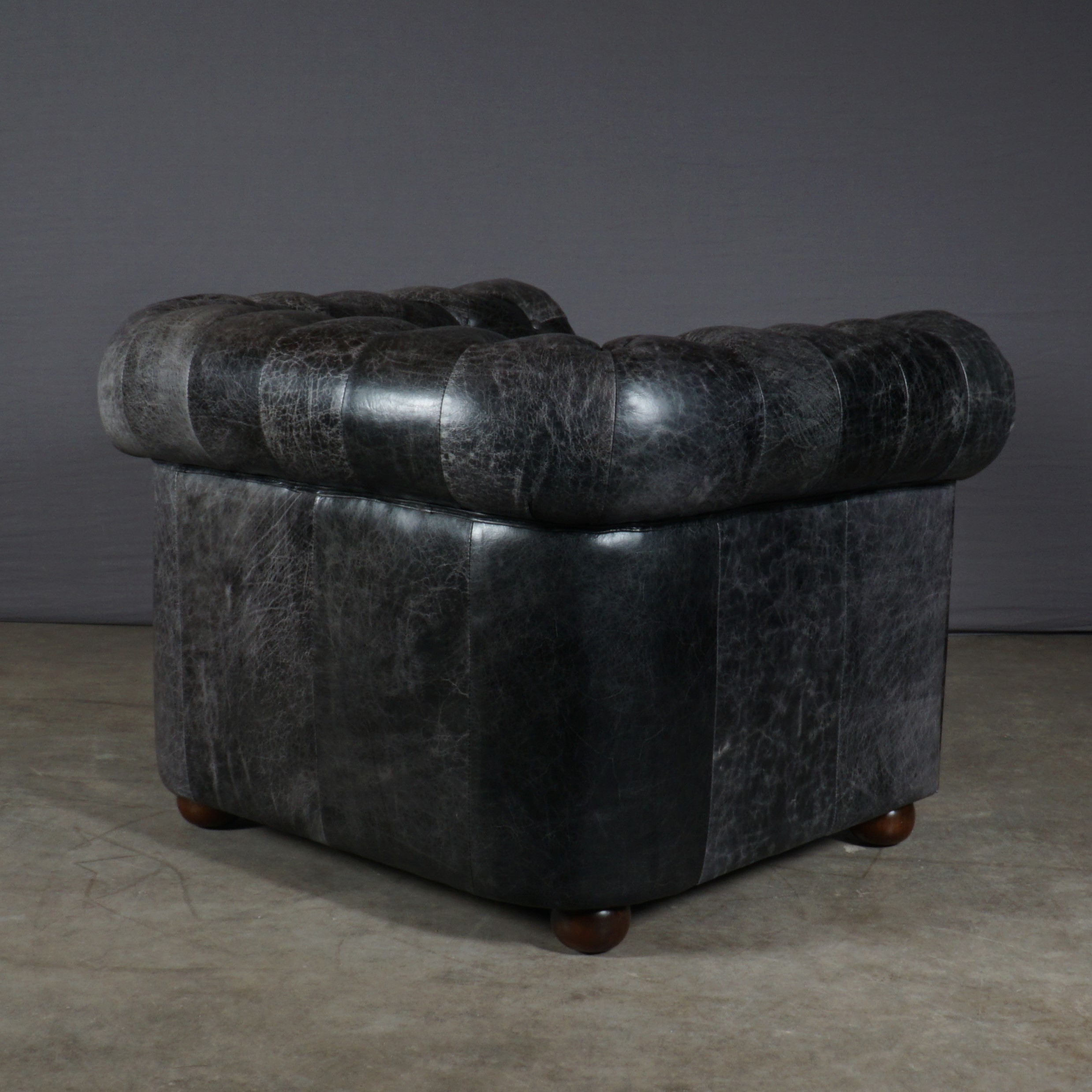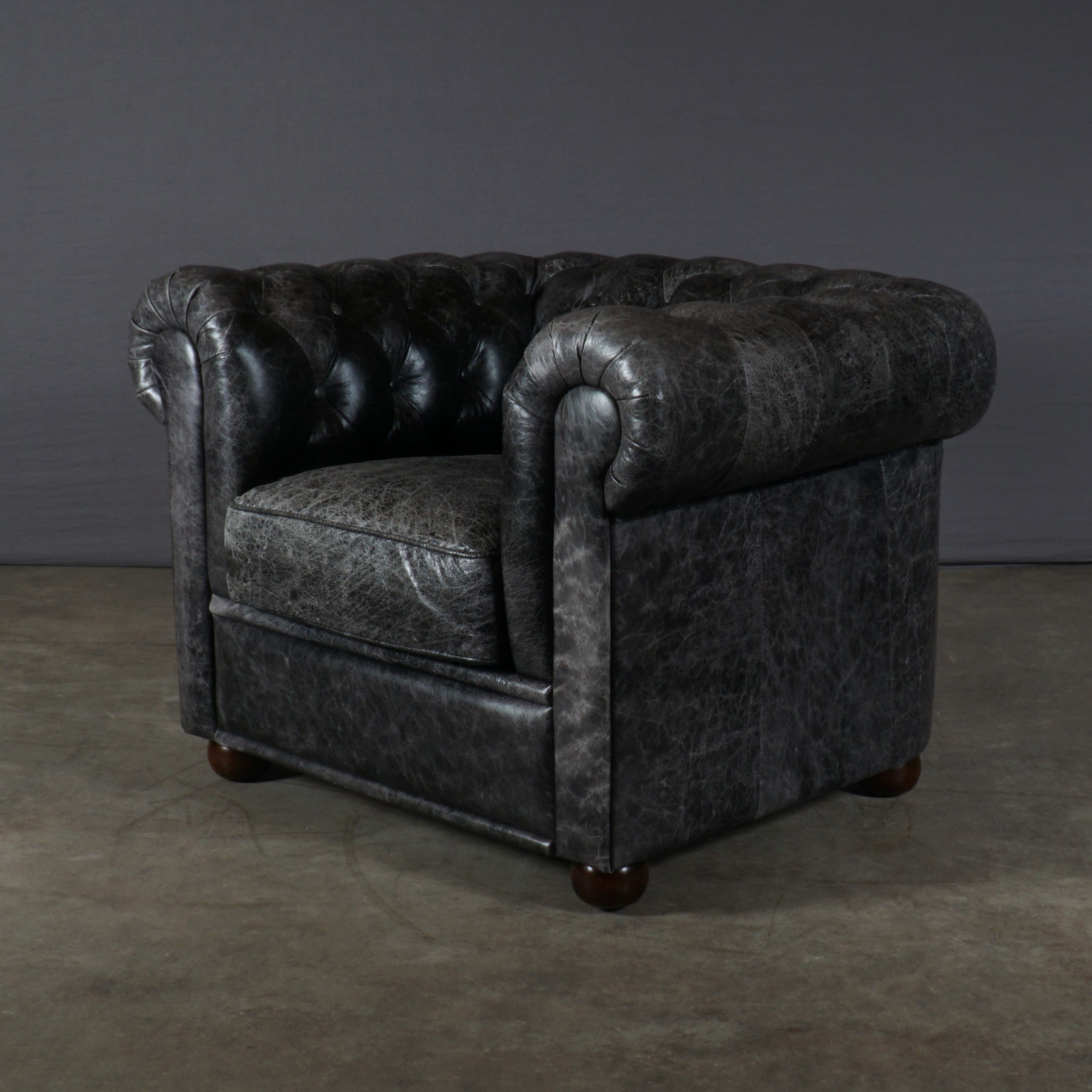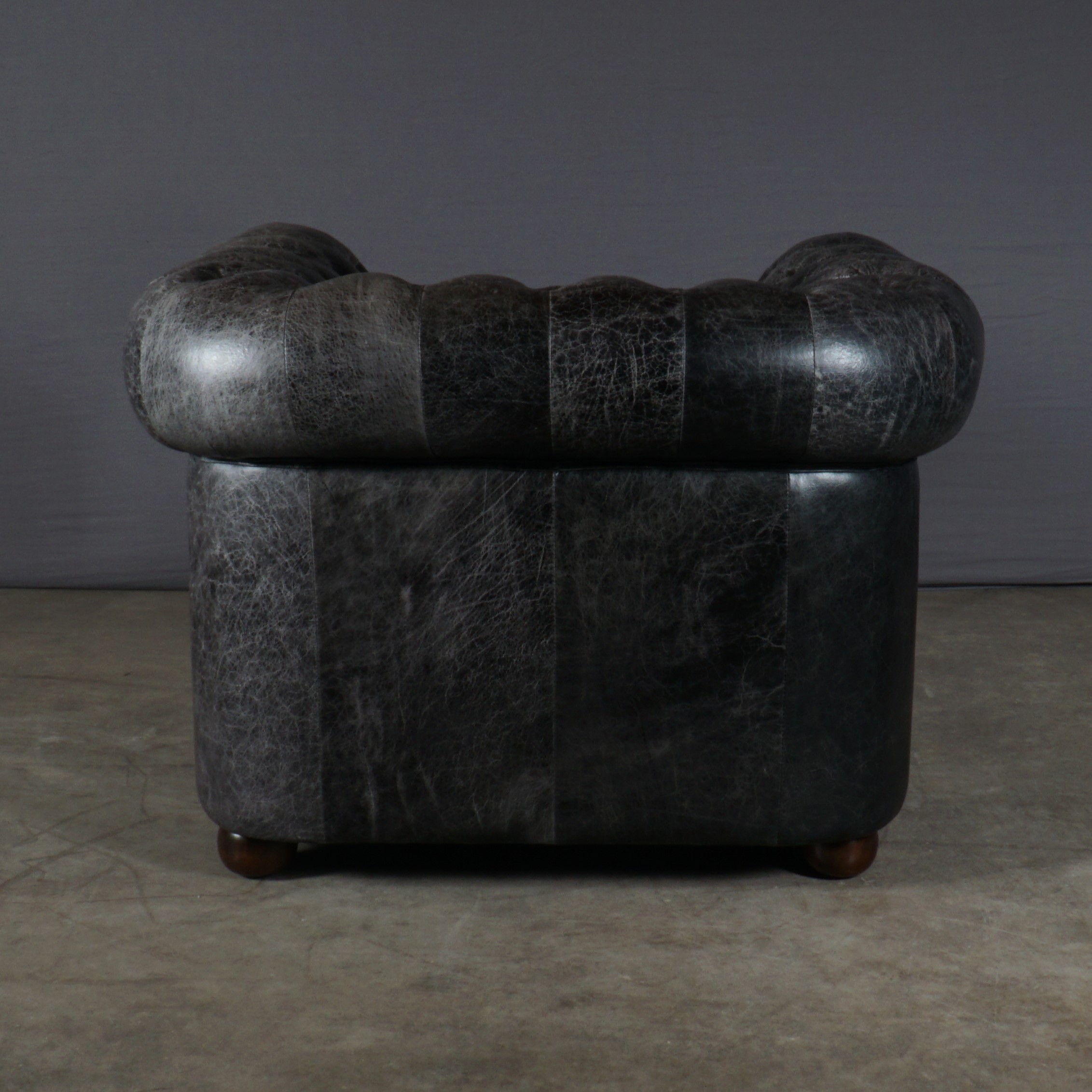 Deze gave indrukwekkende Chesterfield fauteuil is uitgevoerd in zwart leer in vintage look. Deze fauteuil is stoer en robuust en tegelijkertijd ook erg stijlvol en klassiek.