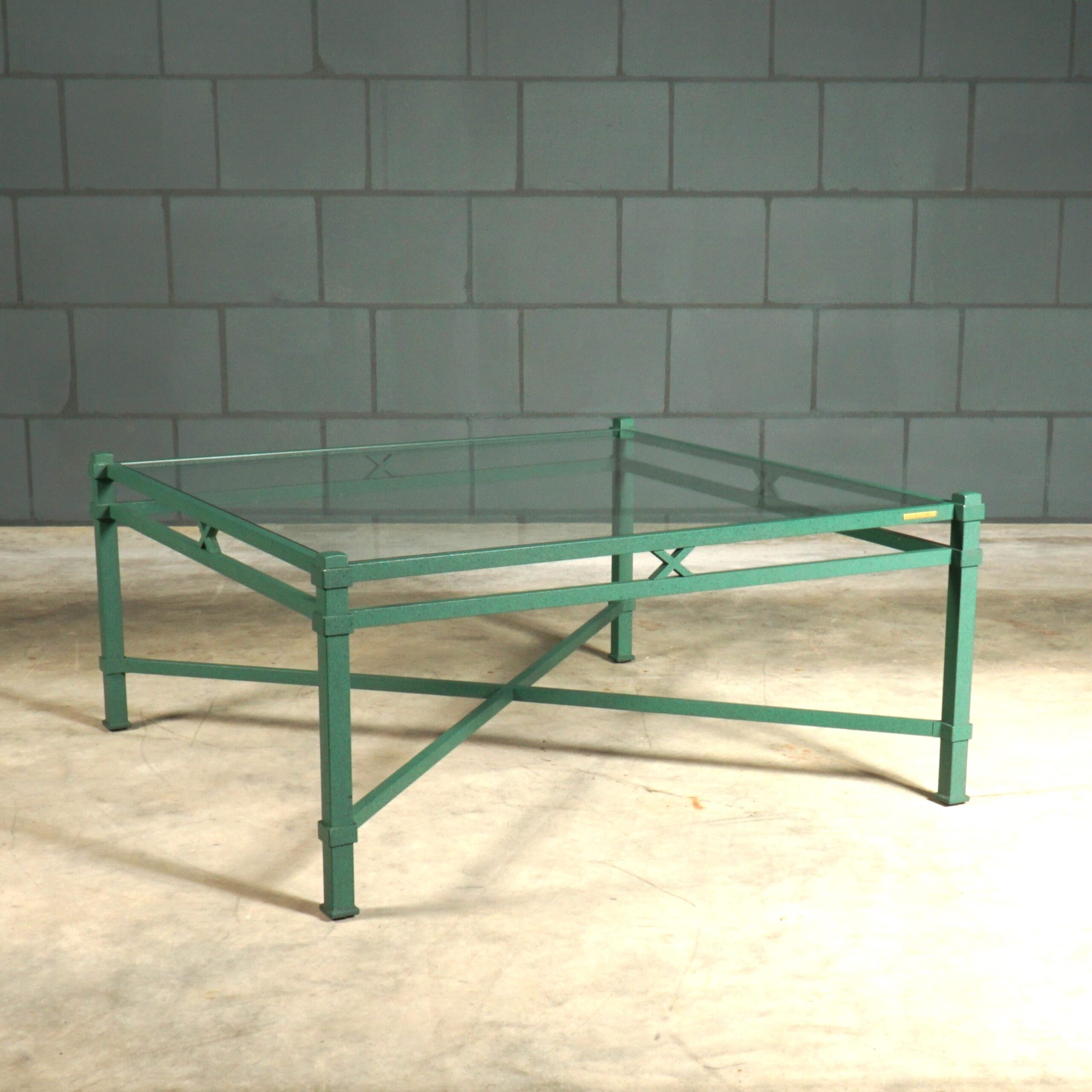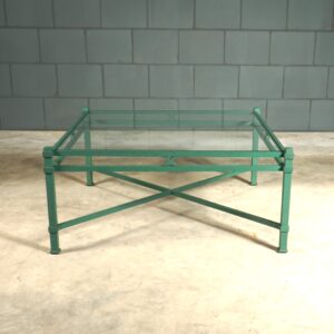 Vintage salontafel – glas – metalen voet – in hoogte verstelbaar