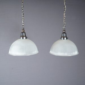 Set vintage industriële Holophane hanglampen